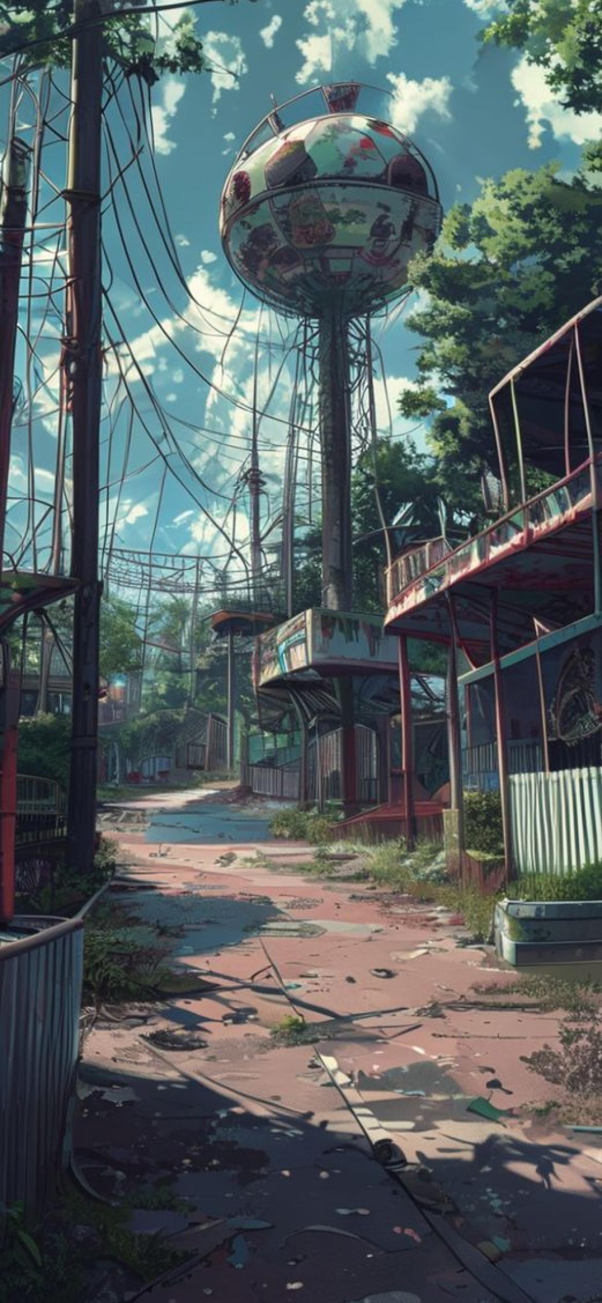 Abandoned Amusement Park Anime Eerie Anime Wallpaper