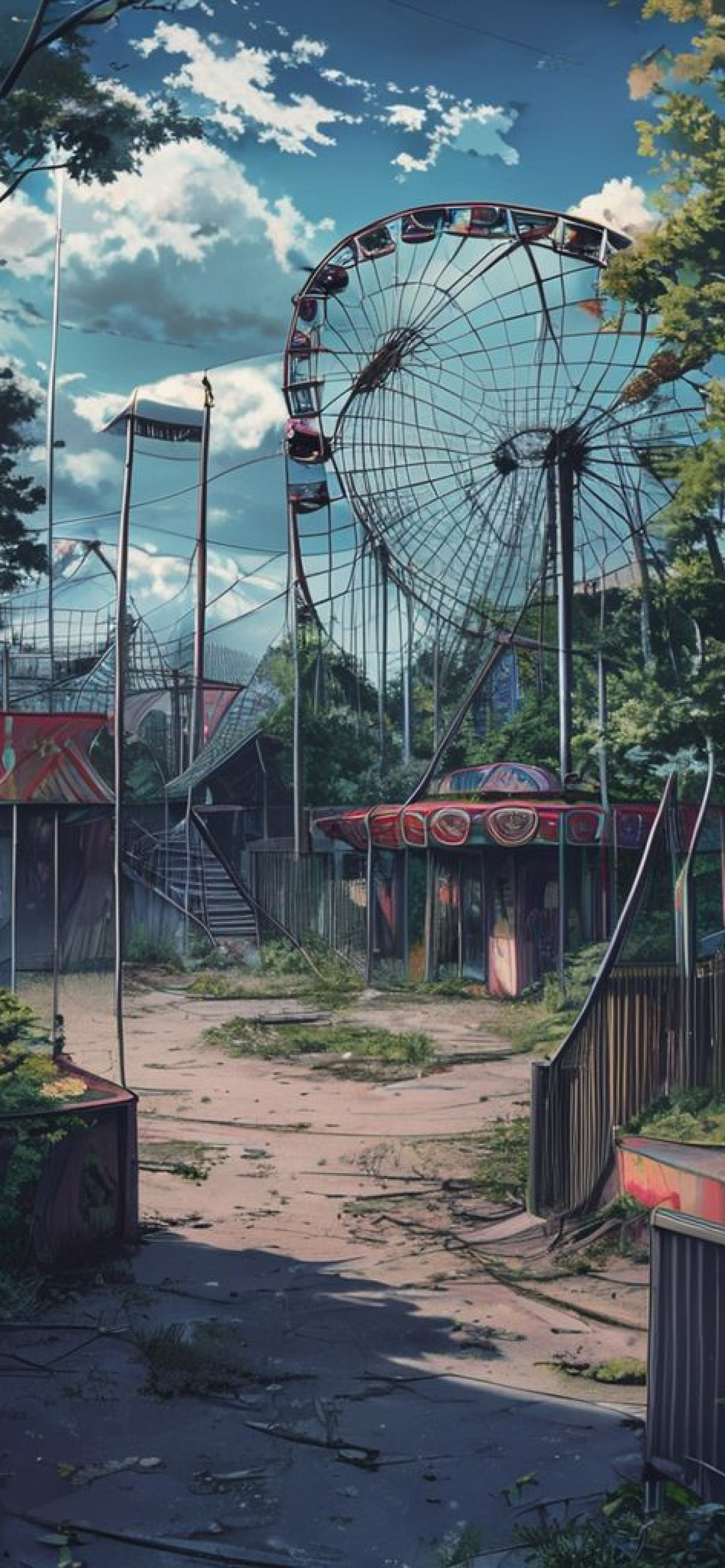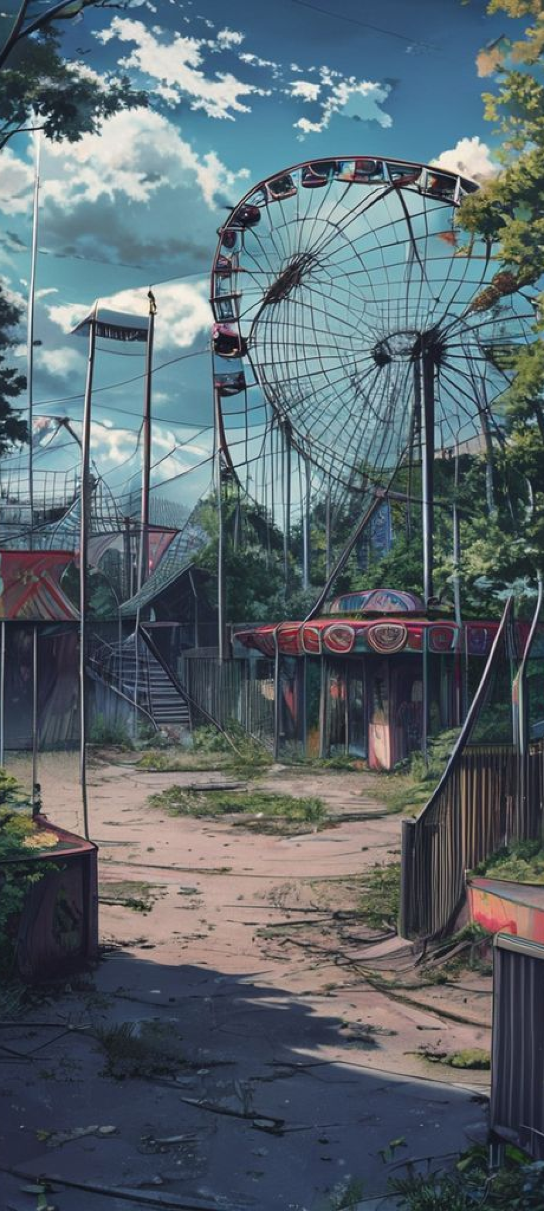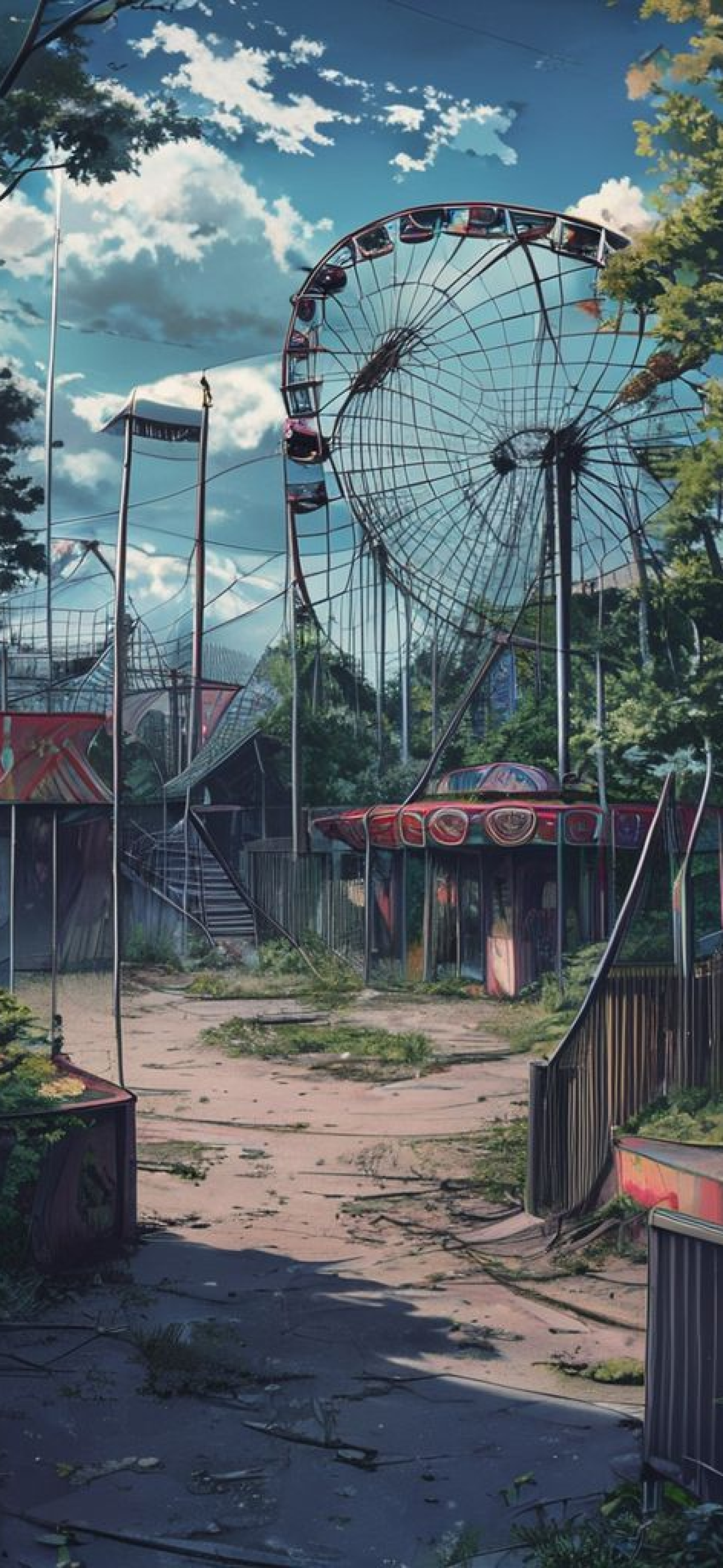 abandoned amusement park anime eerie nostalgic