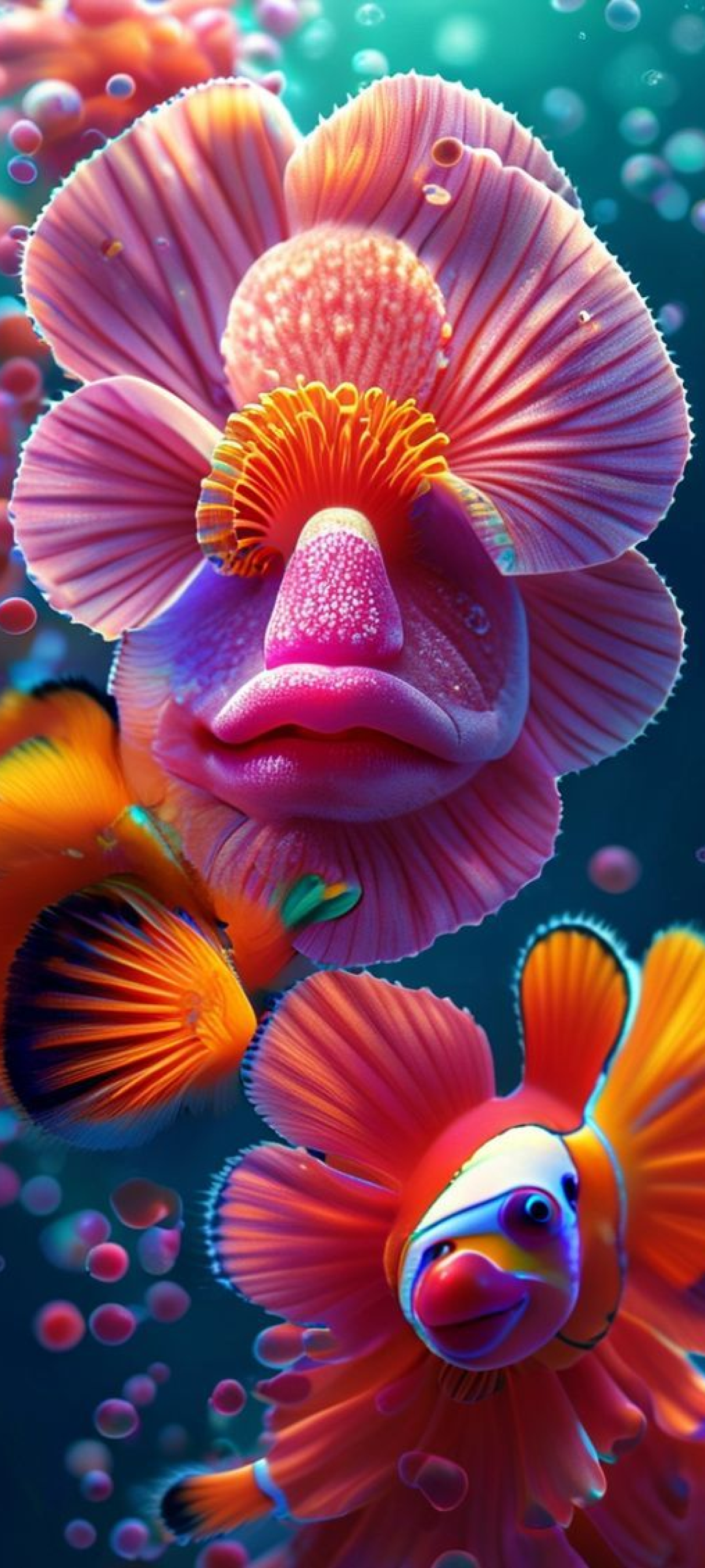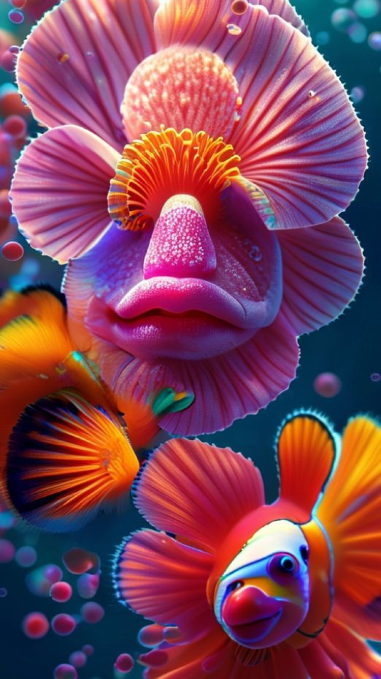 Anemone And Clownfish Macro Vibrant Photorealistic Wallpaper