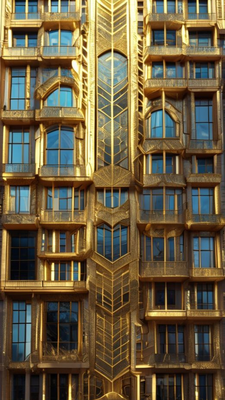art deco building facade geometric golden details