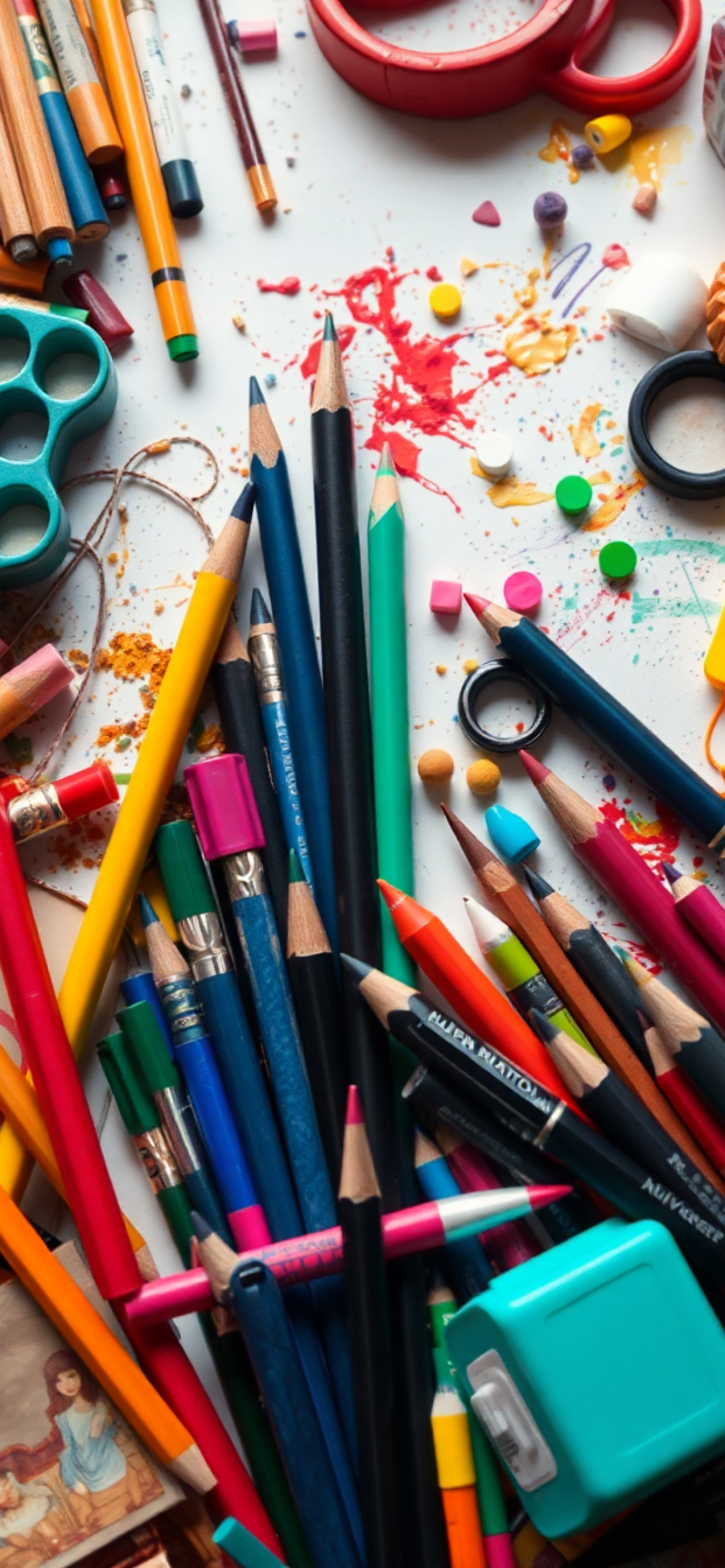 Art Supplies Scattered Creative Mess Photorealistic Wallpaper