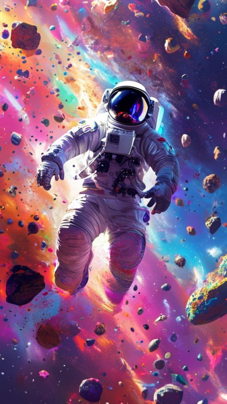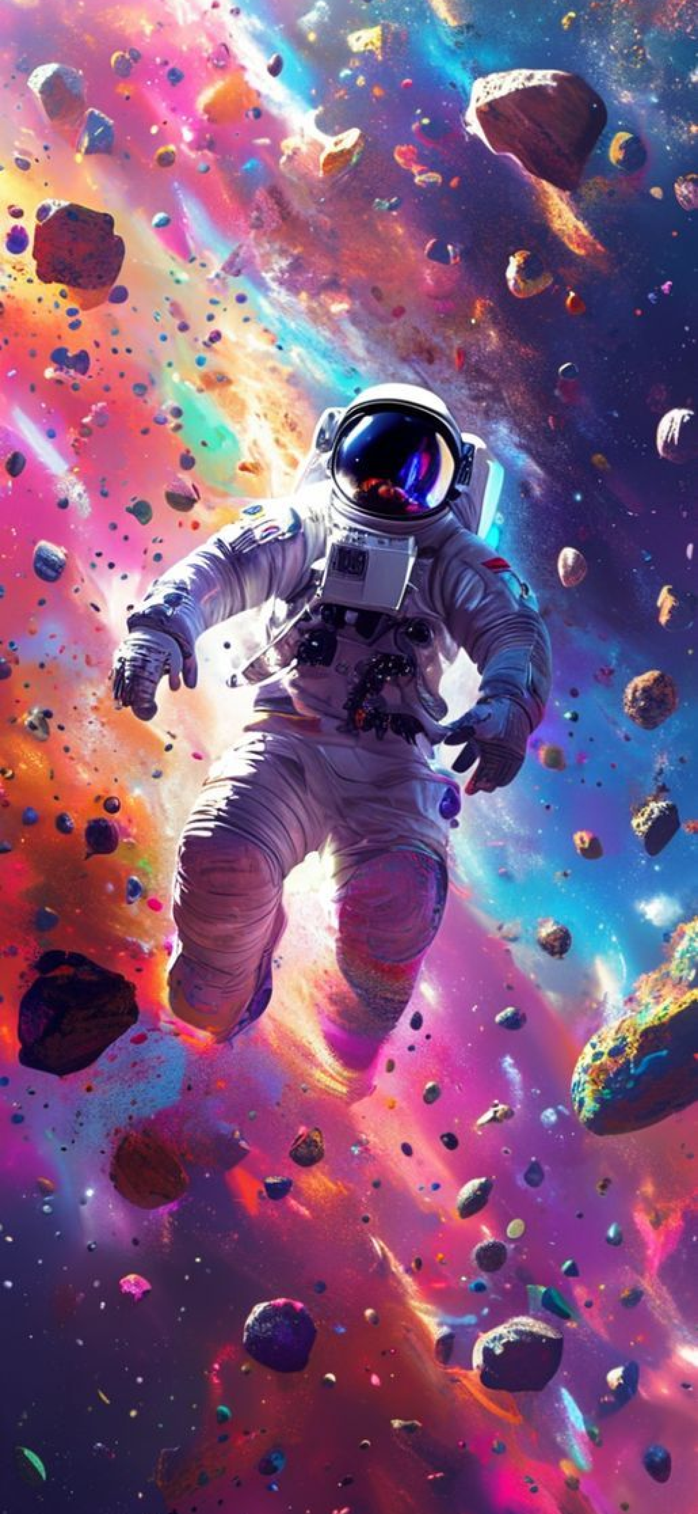 Astronaut Floating Through Colorful Asteroid Digital art Wallpaper