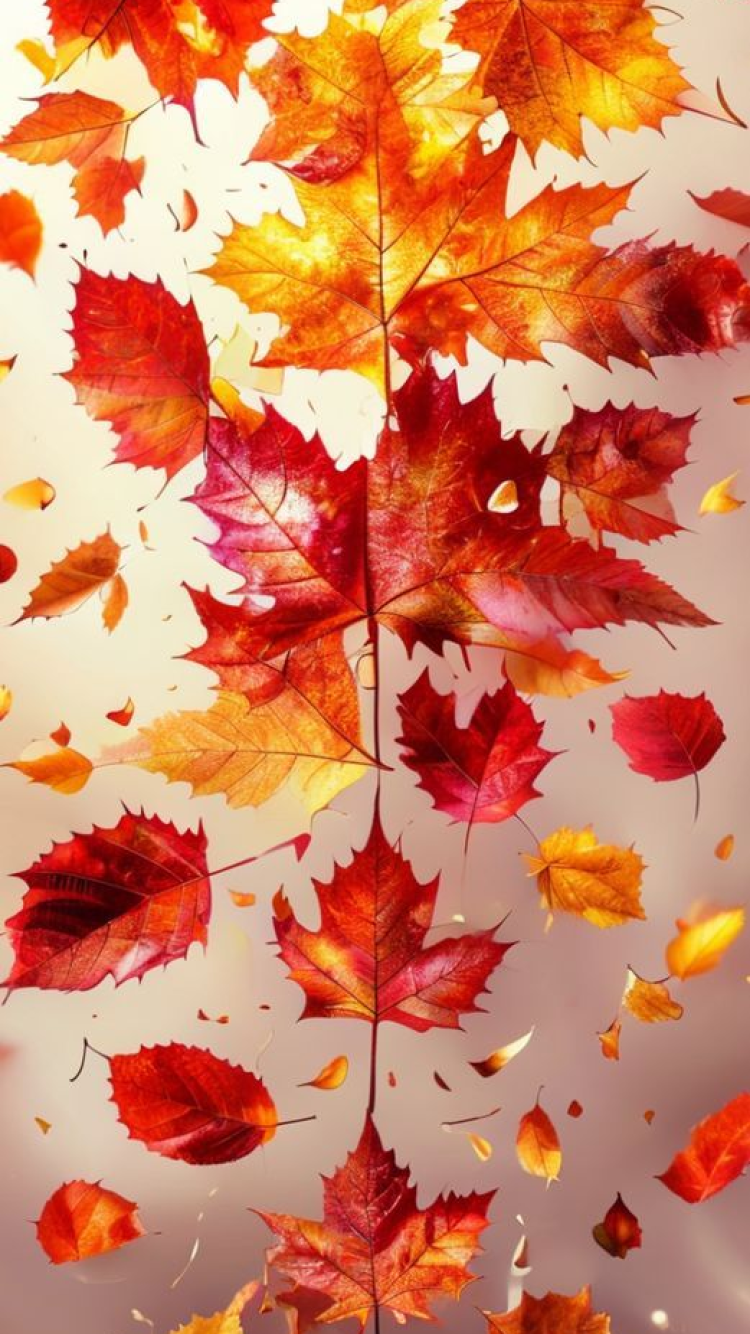 Autumn Leaves Falling Maple Red Photorealistic Wallpaper