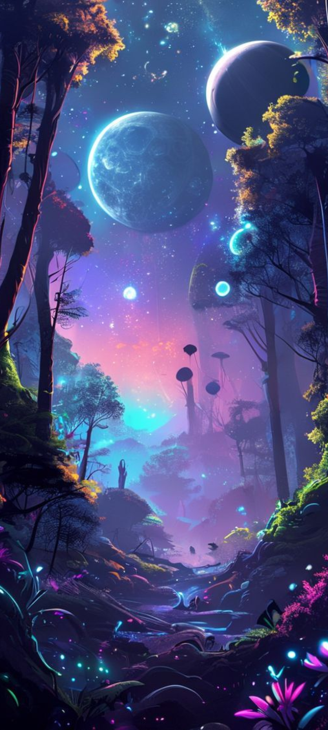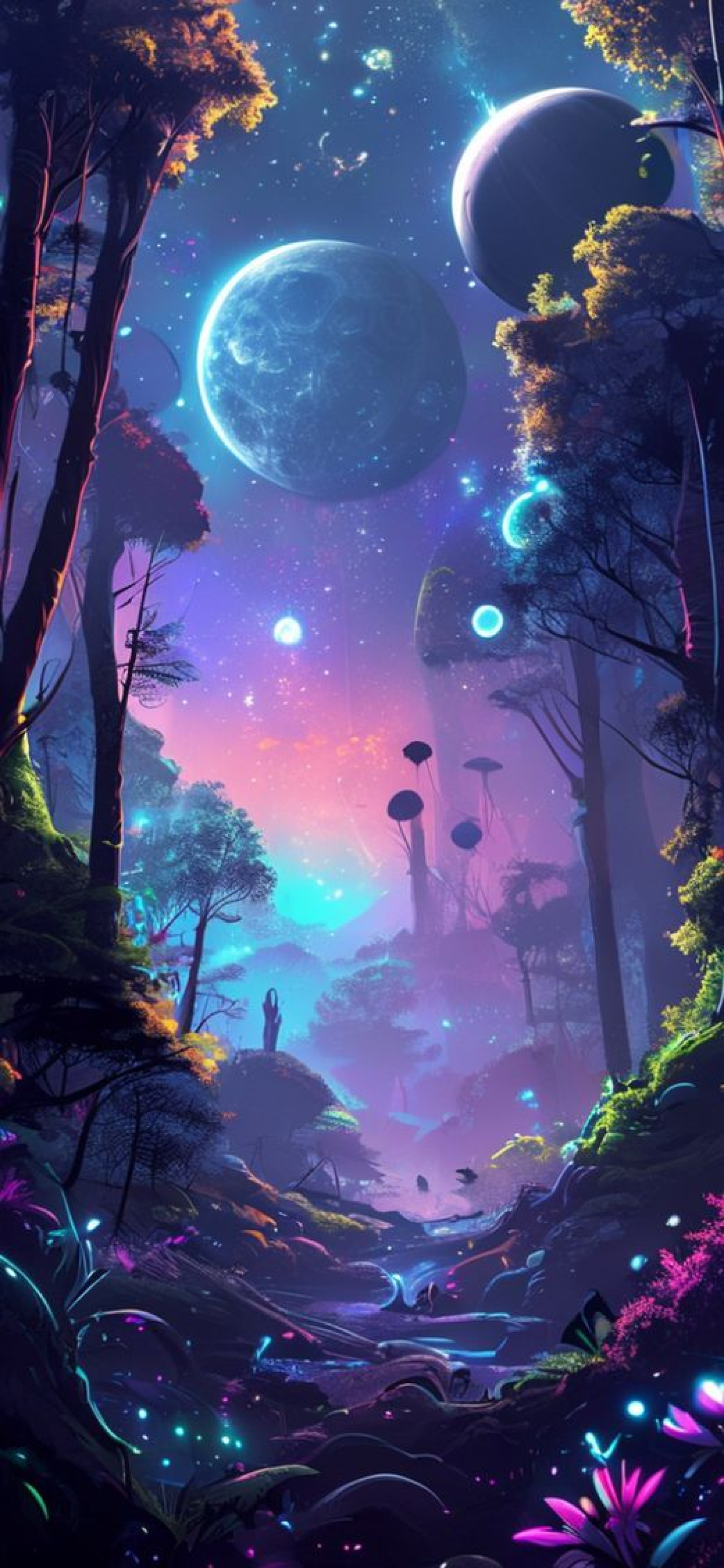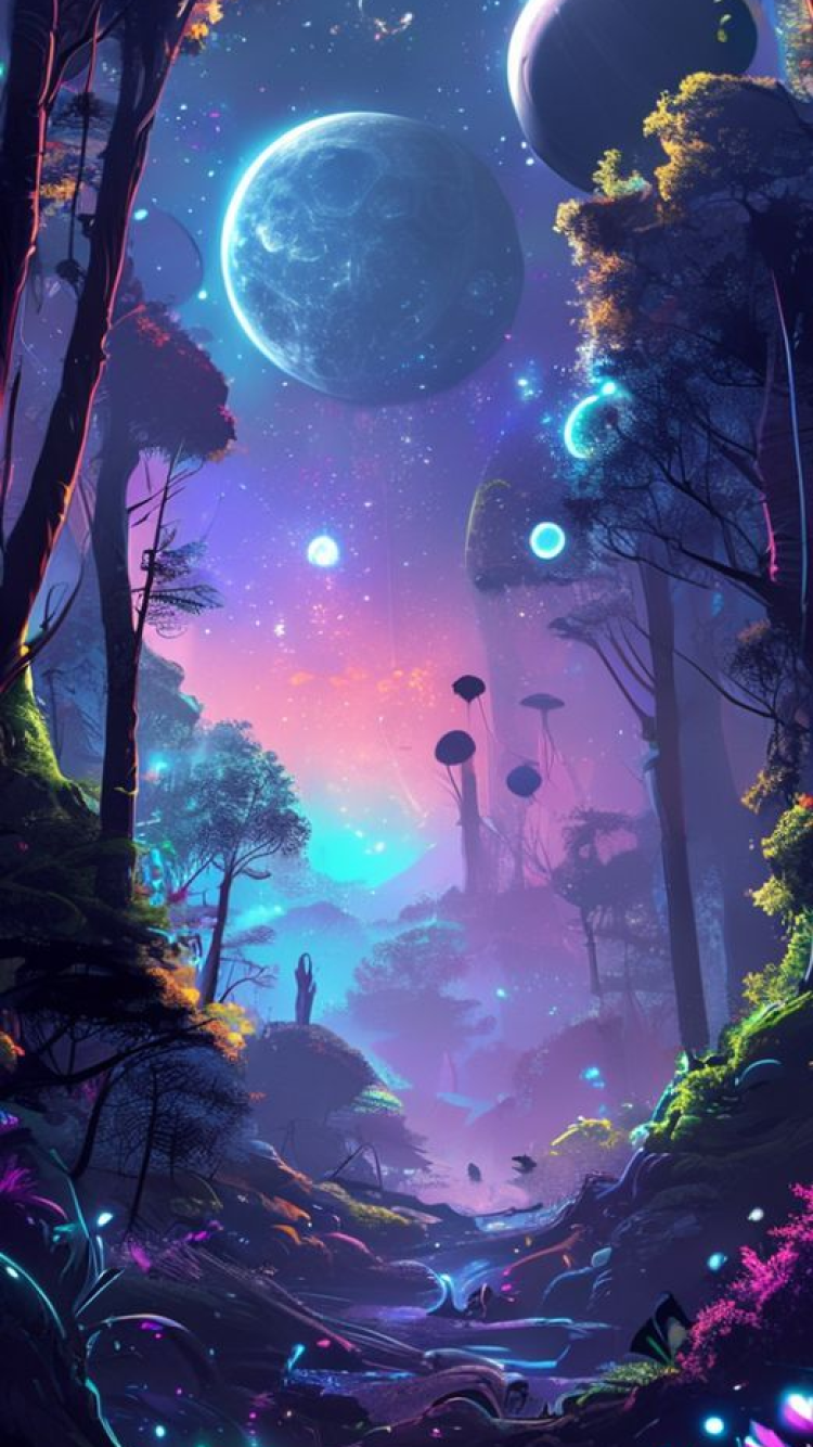 Bioluminescent Alien Forest On Distant Digital art Wallpaper