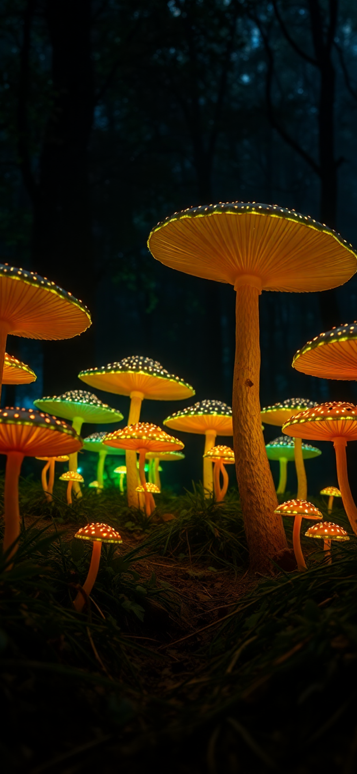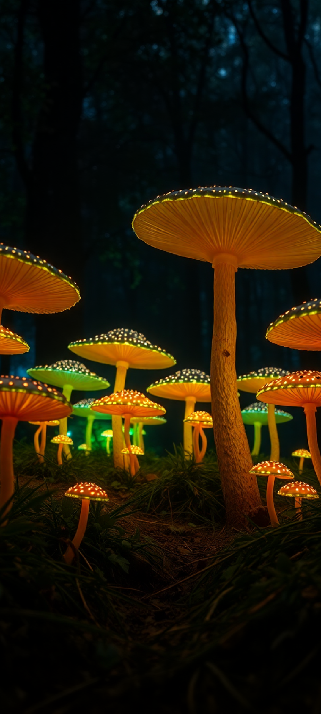 Bioluminescent Mushroom Forest At Night Photorealistic Wallpaper