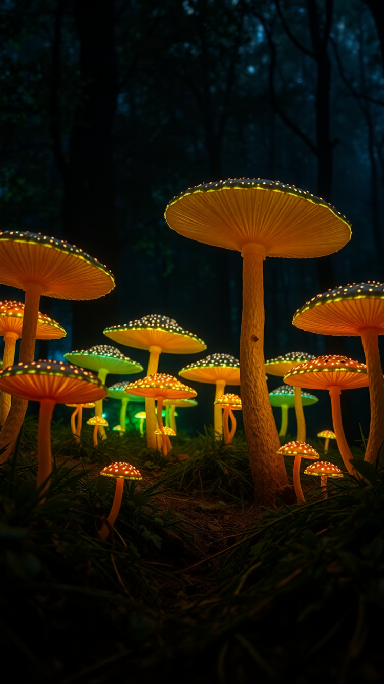 bioluminescent mushroom forest at night magical glow