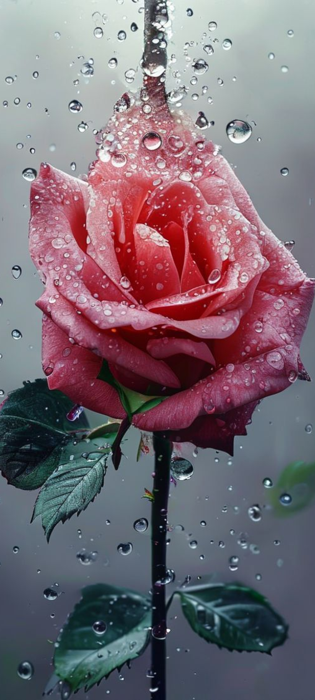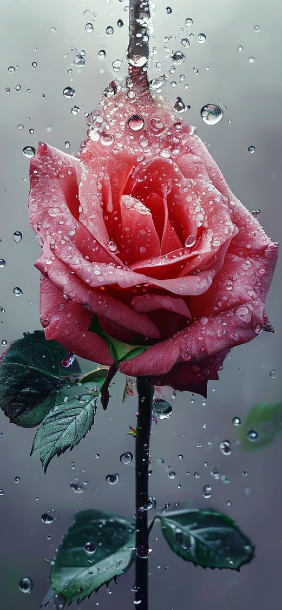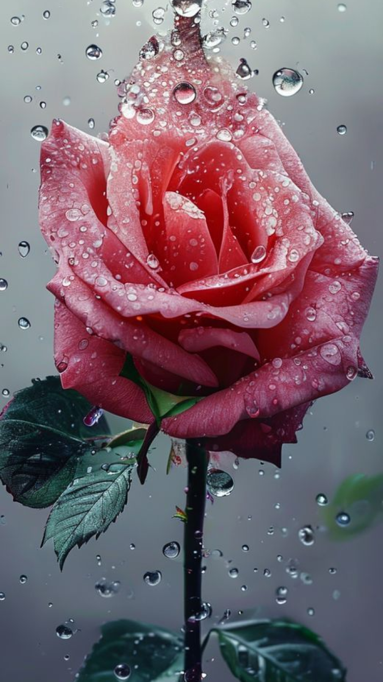 Black Rose With Water Droplets Photorealistic Wallpaper