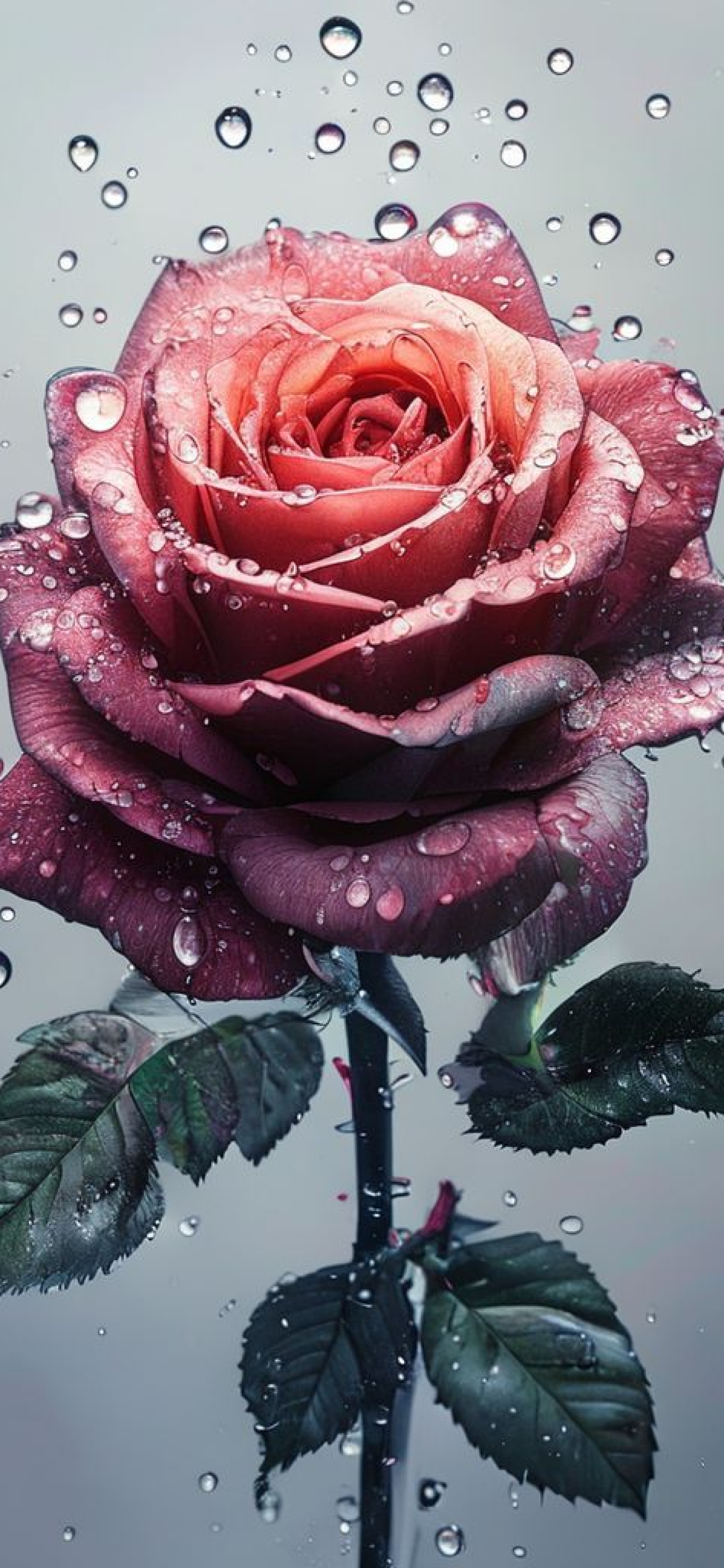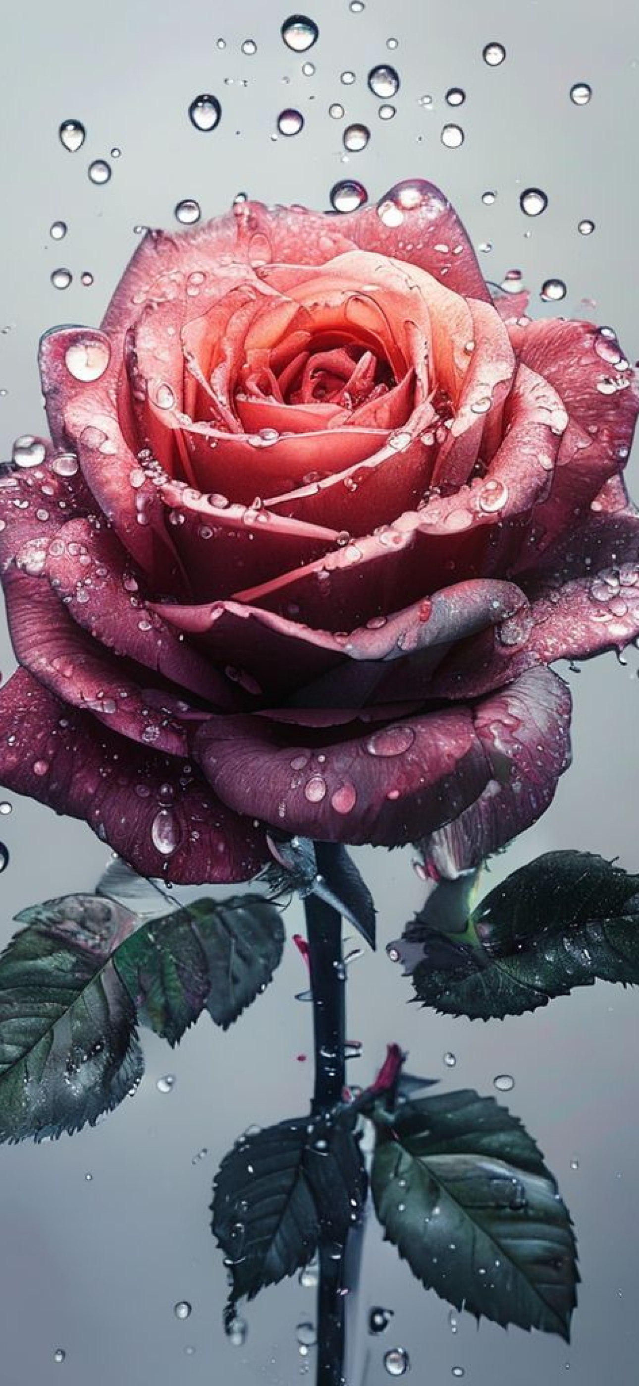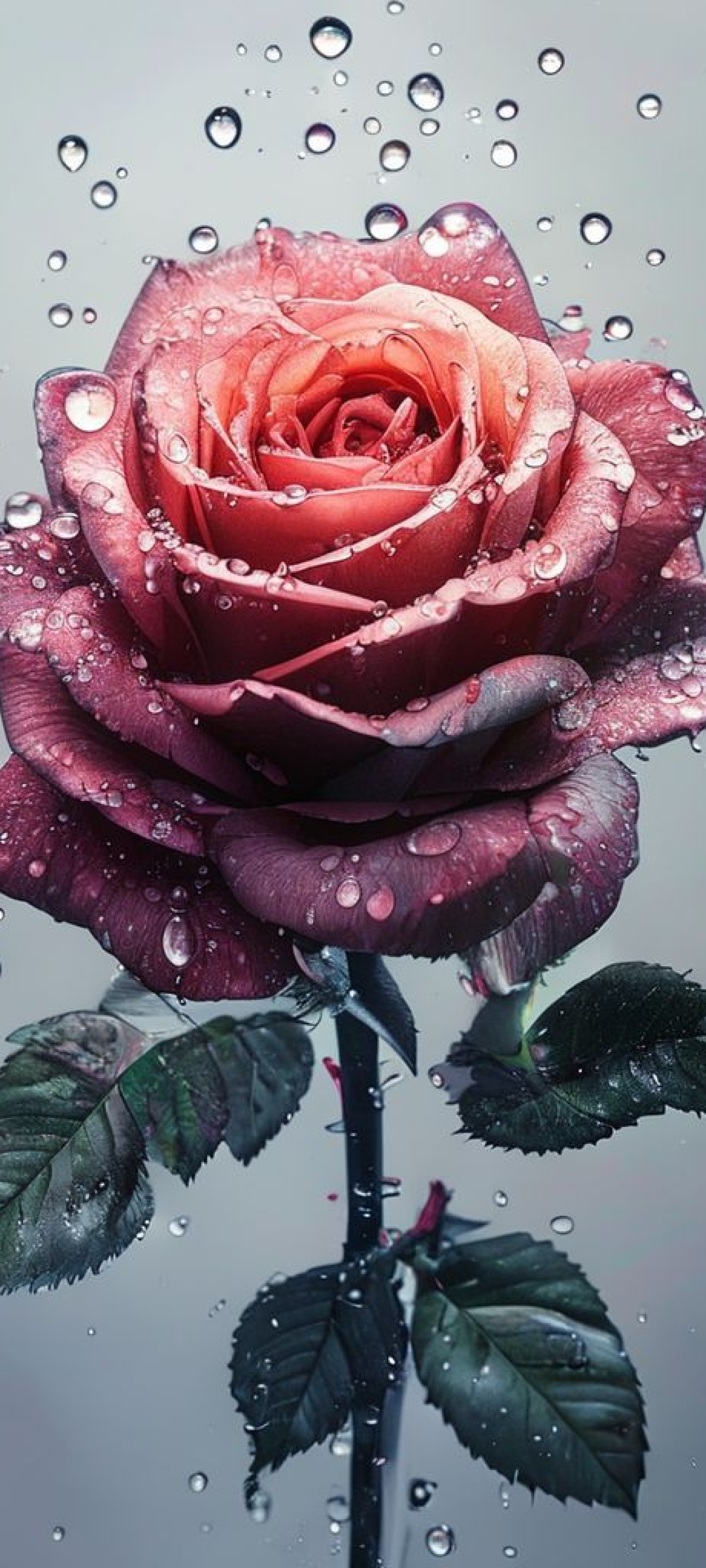 Black Rose With Water Droplets Photorealistic Wallpaper