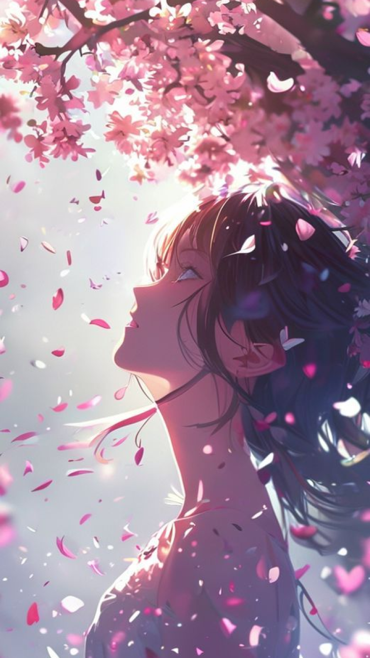 cherry blossom petals falling anime girl silhouette