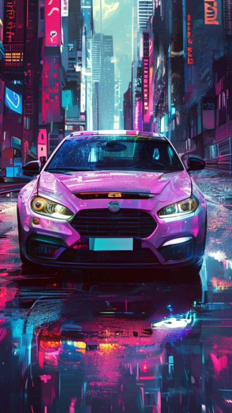 Crazy Cyberpunk Police Car Digital art Wallpaper