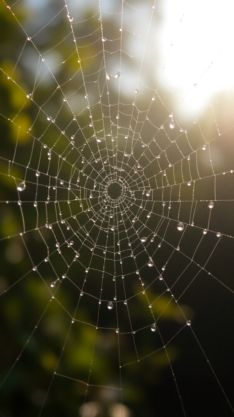 dew drops on spiderweb morning light