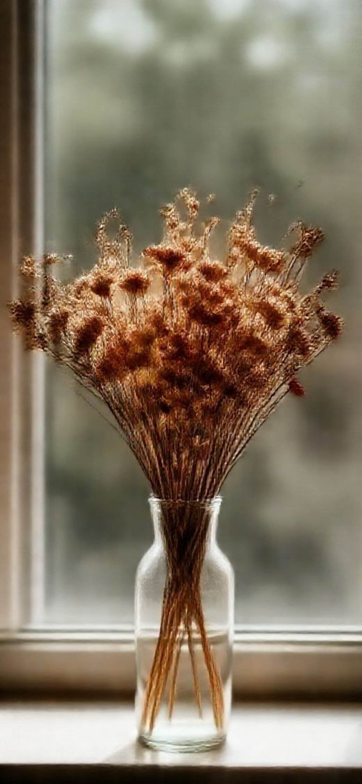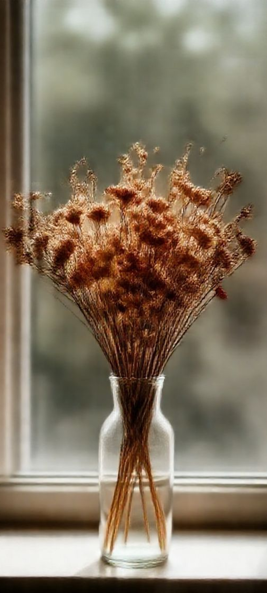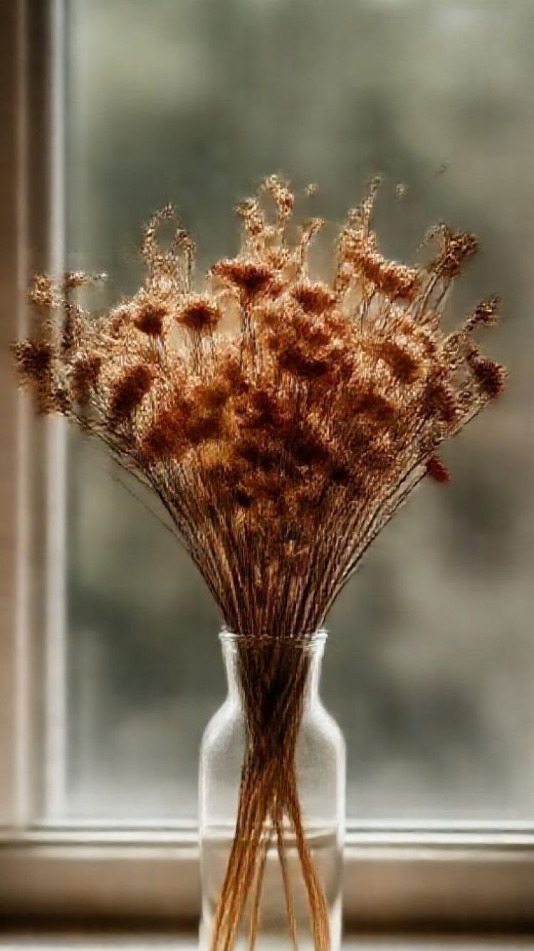 dried flowers in glass vase window light