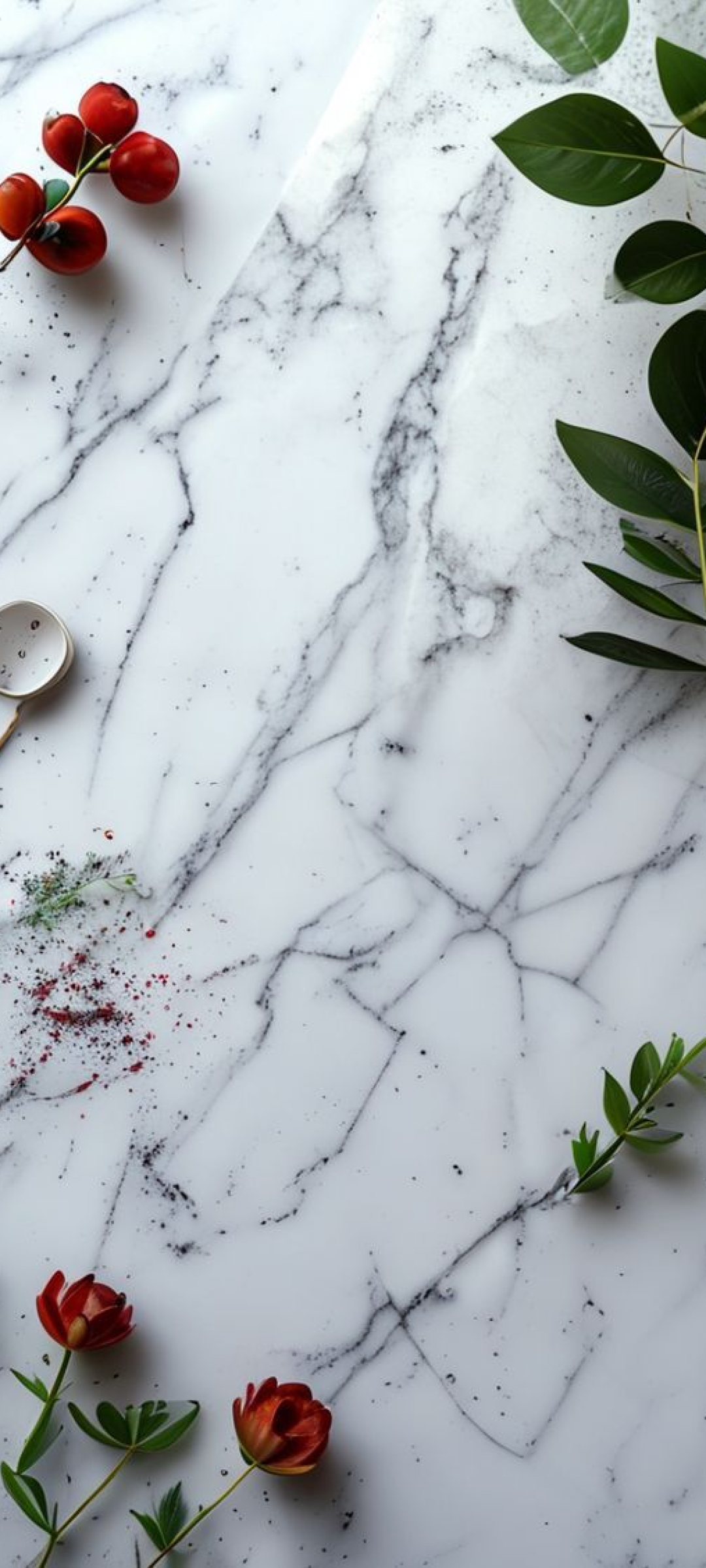 Film Camera On Marble Flatlay Photorealistic Wallpaper