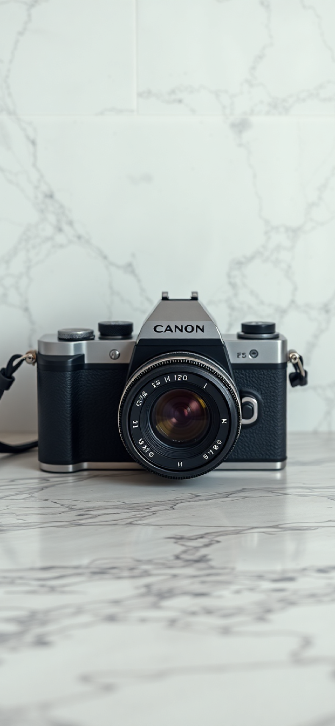 Film Camera On Marble Flatlay Photorealistic Wallpaper