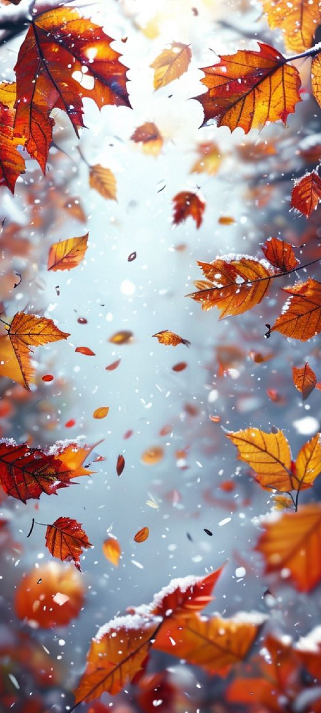 First Snow Falling On Autumn Photorealistic Wallpaper