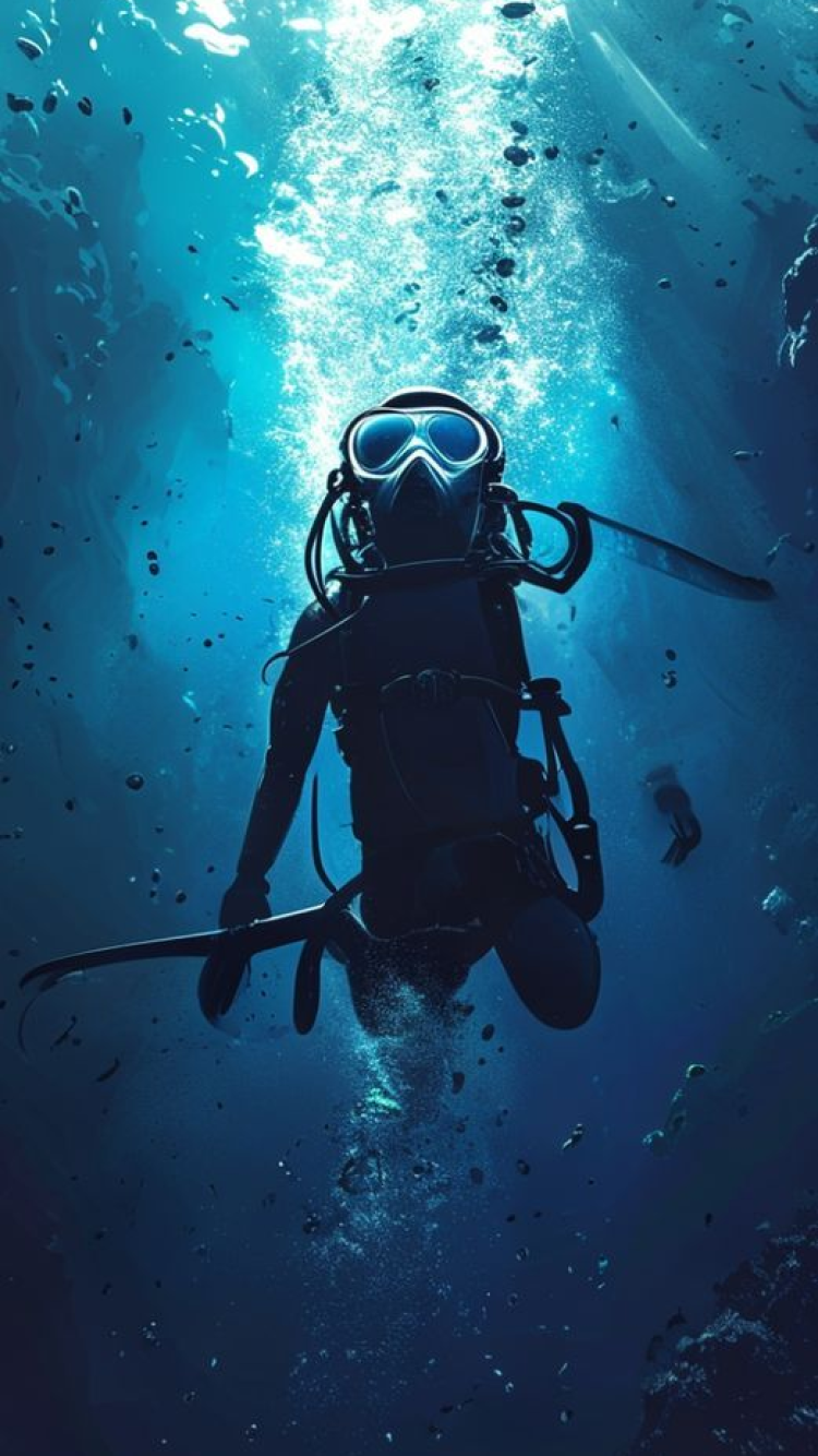 Freediver Descending Into Deep Blue Photorealistic Wallpaper