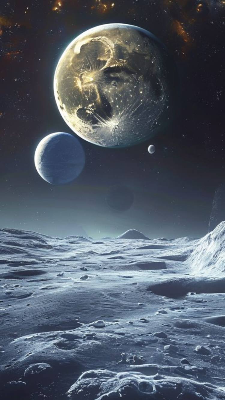 Frozen Moon Surface With Jupiter Photorealistic Wallpaper