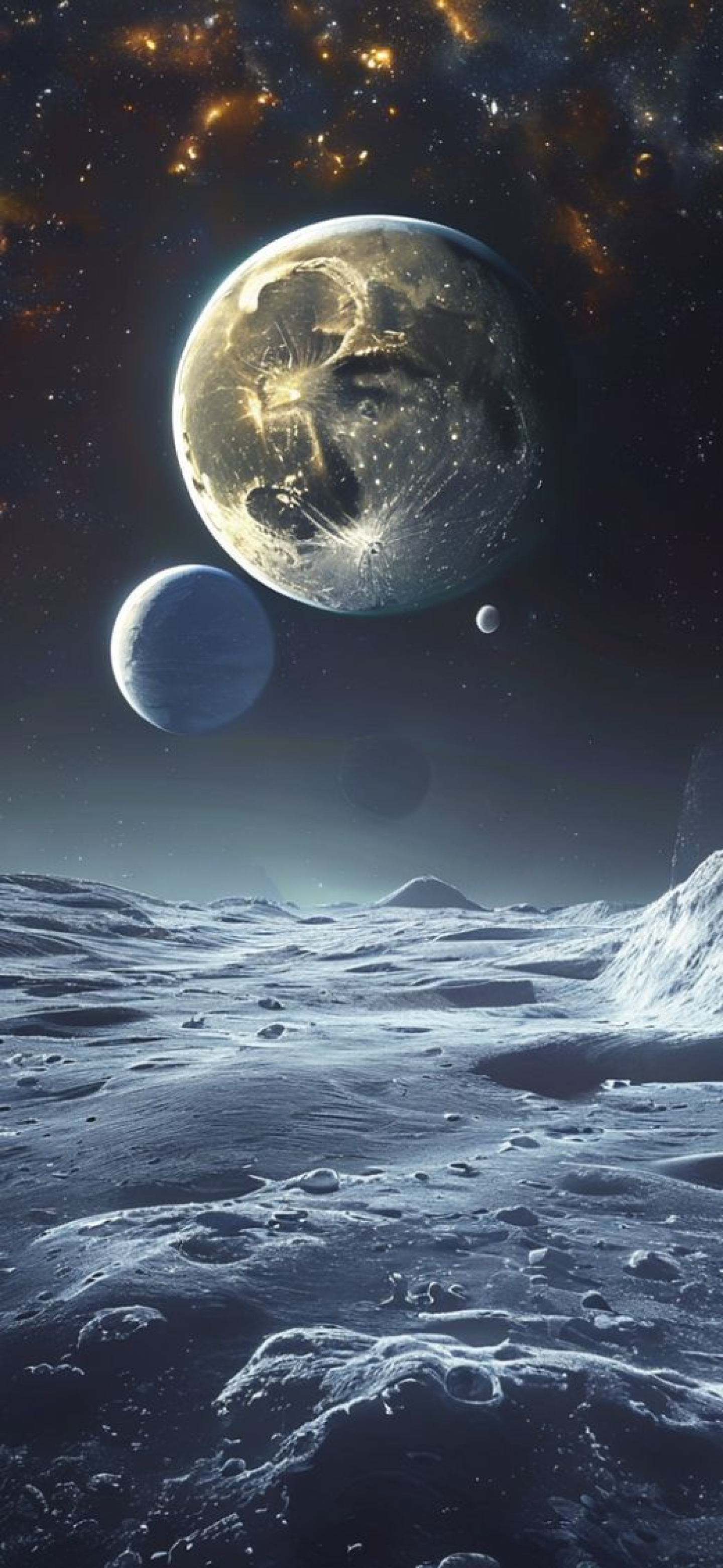 Frozen Moon Surface With Jupiter Photorealistic Wallpaper