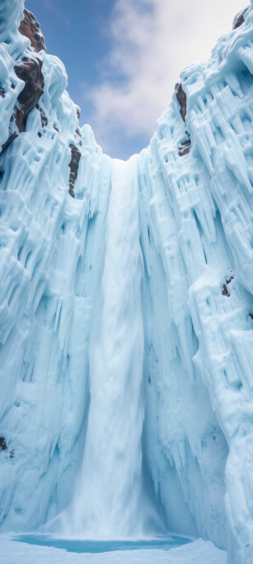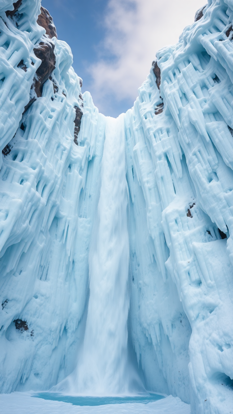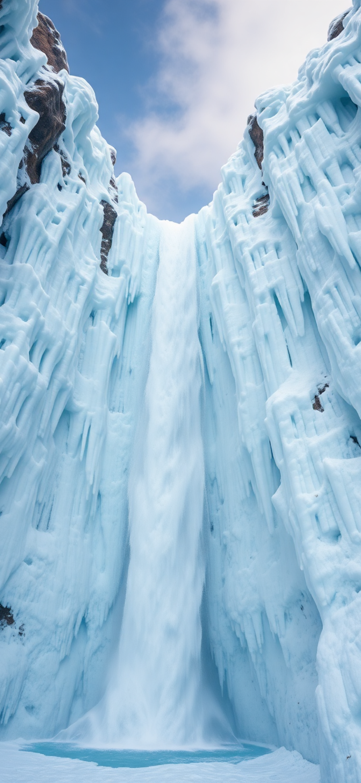 Frozen Waterfall Ice Formations Winter Photorealistic Wallpaper