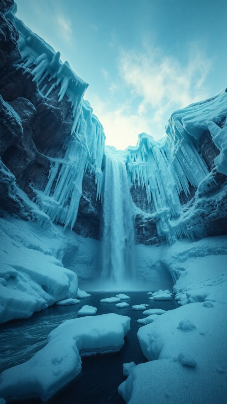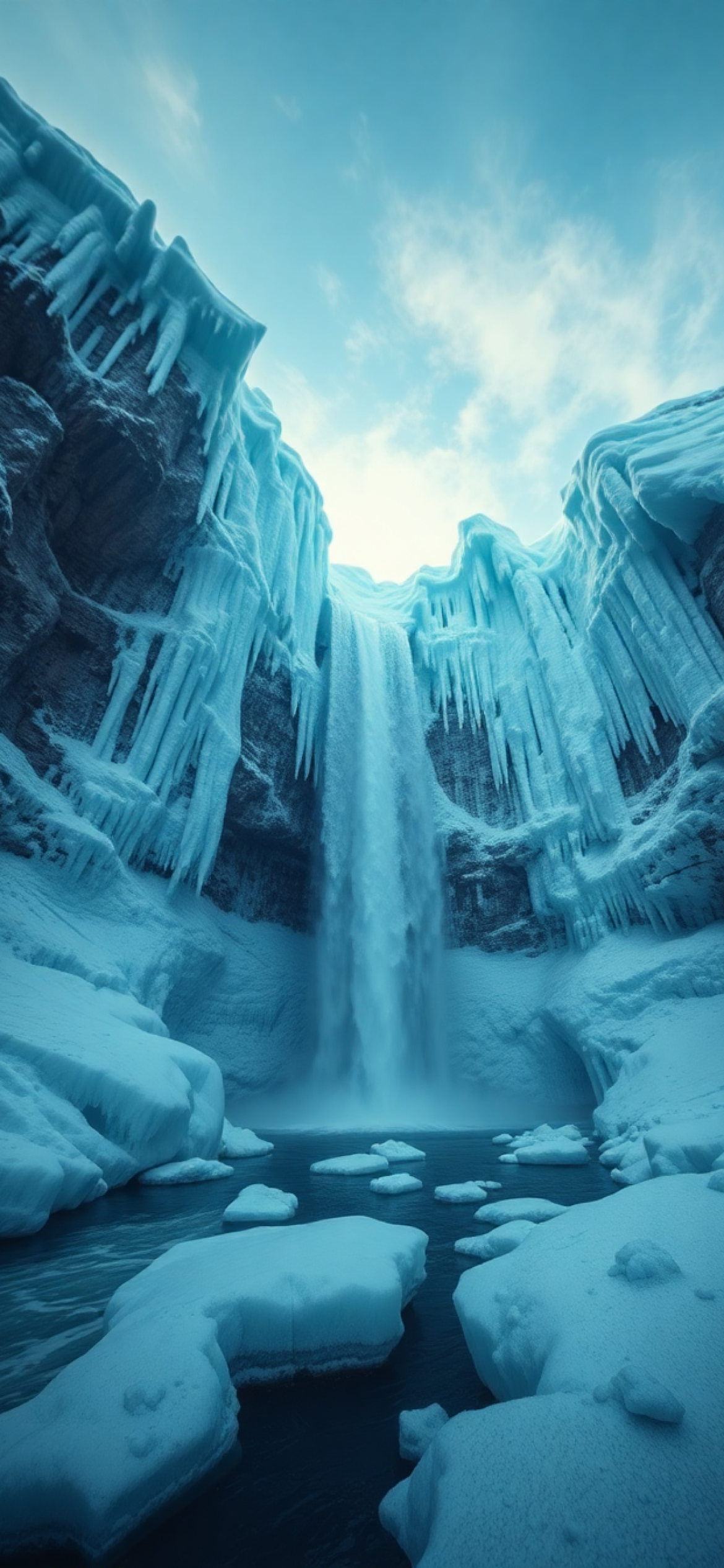 Frozen Waterfall Ice Formations Winter Photorealistic Wallpaper