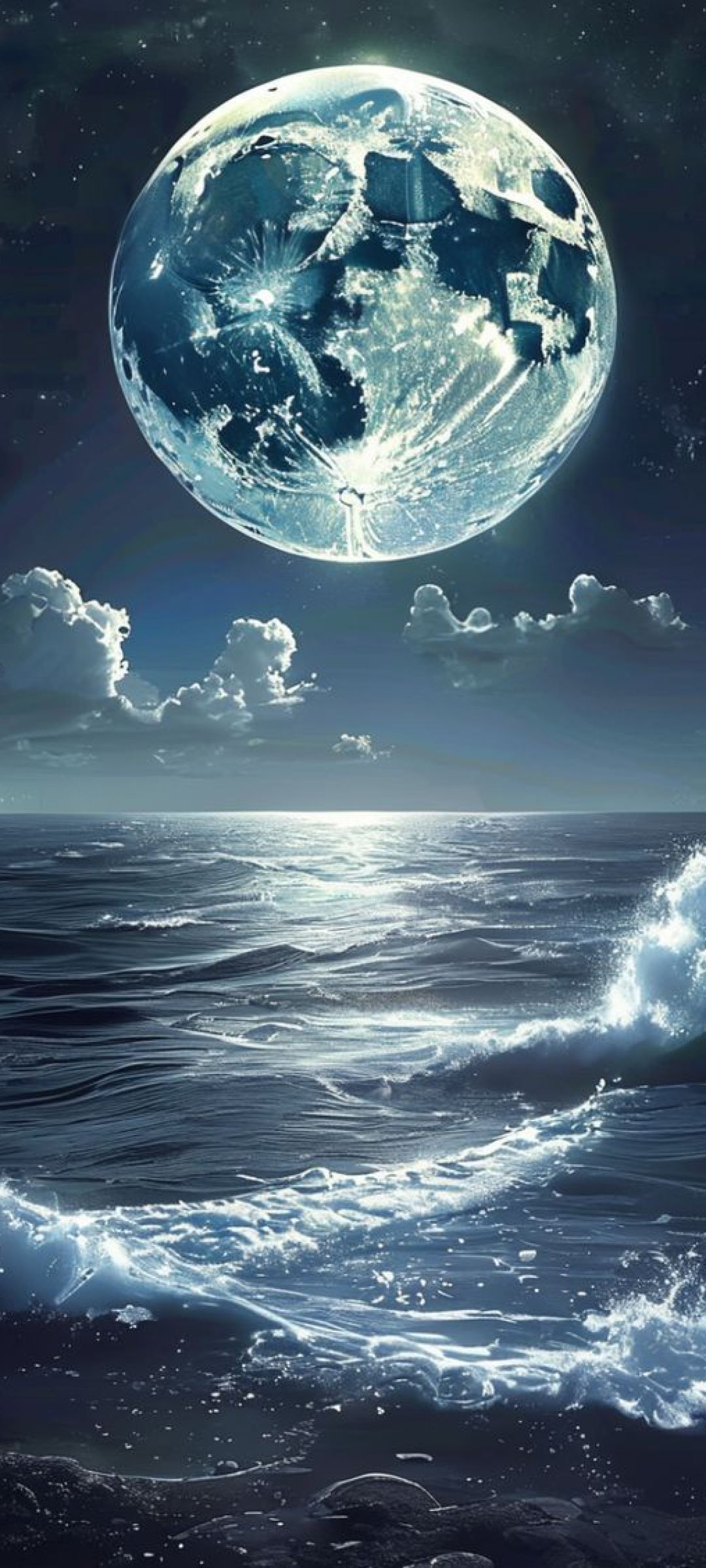 Giant Moon Touching Ocean Surface Digital art Wallpaper