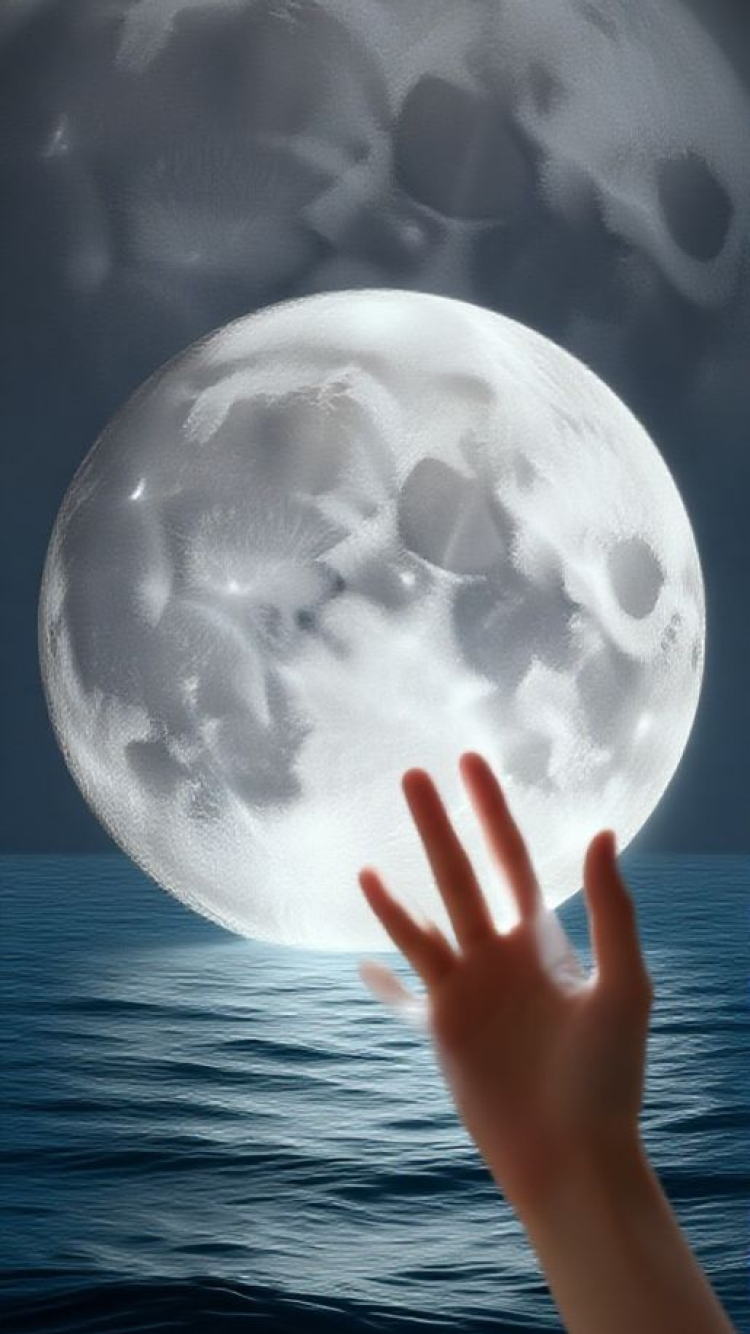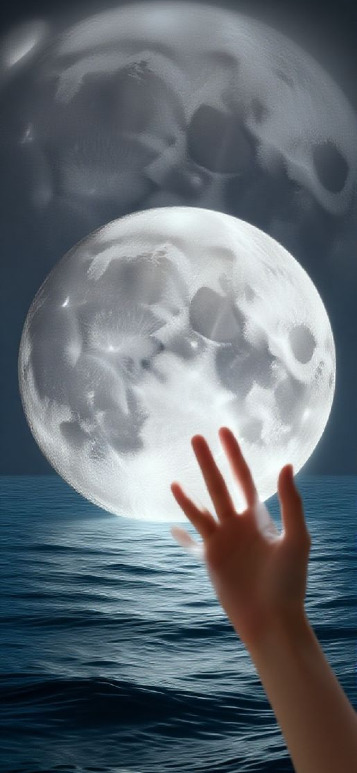 Giant Moon Touching Ocean Surface Digital art Wallpaper