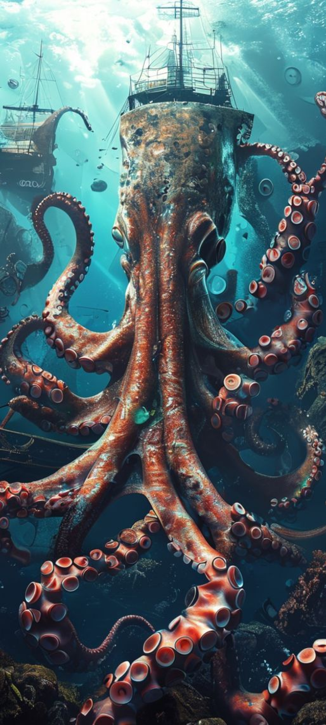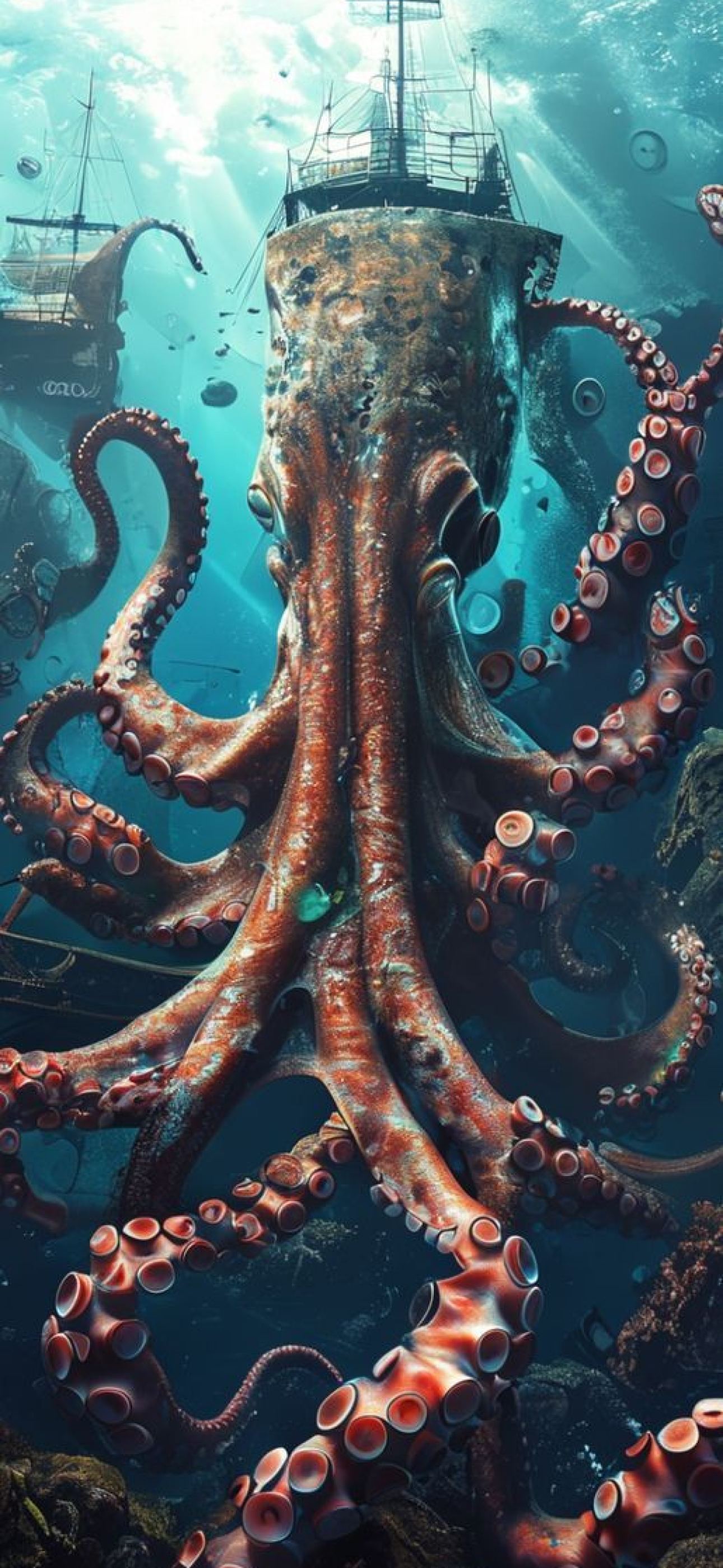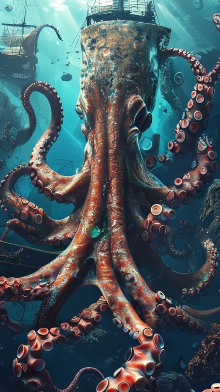 Giant Octopus Shipwreck Deep Ocean Digital art Wallpaper