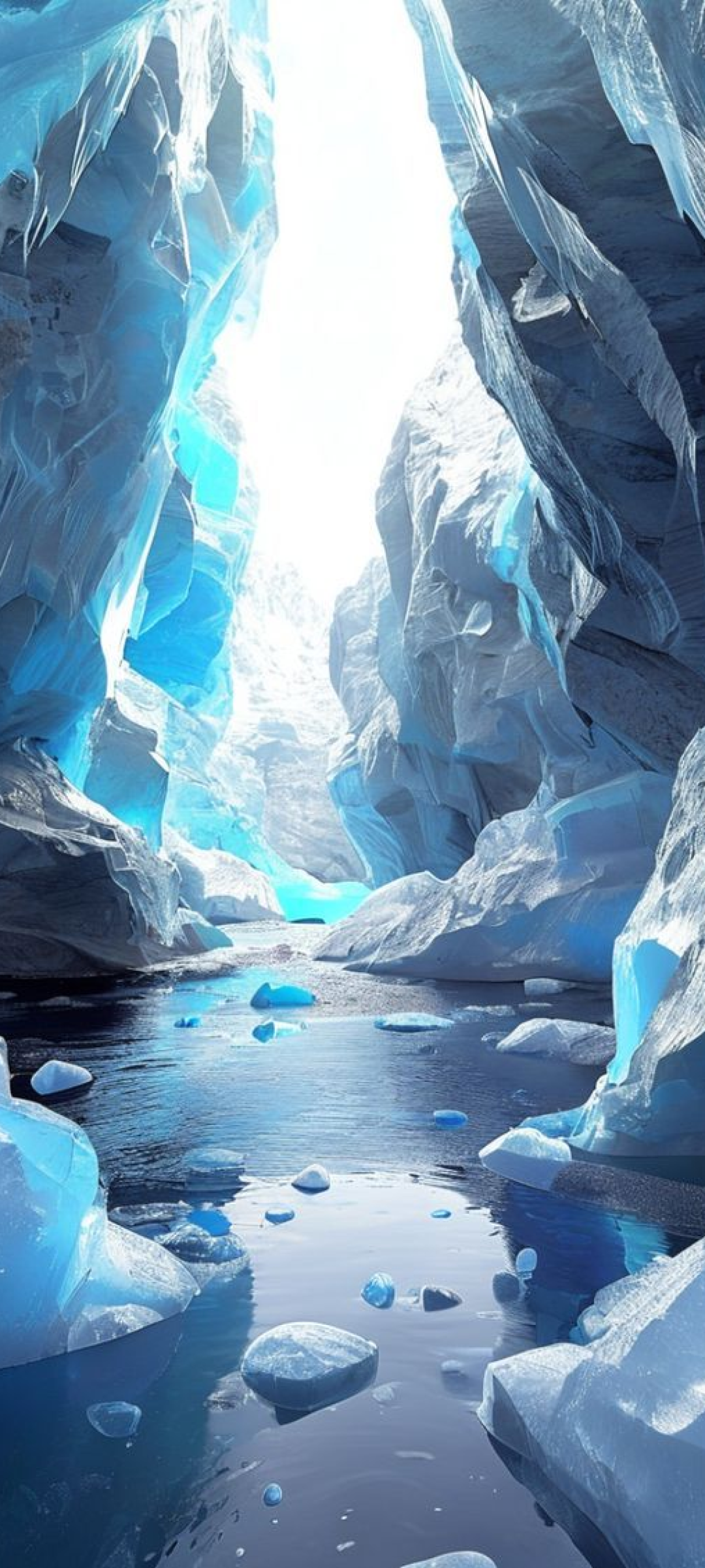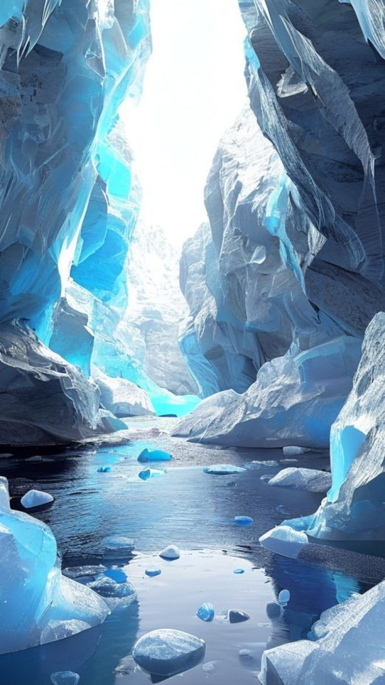 Glacial Ice Cave Blue Crystal Photorealistic Wallpaper