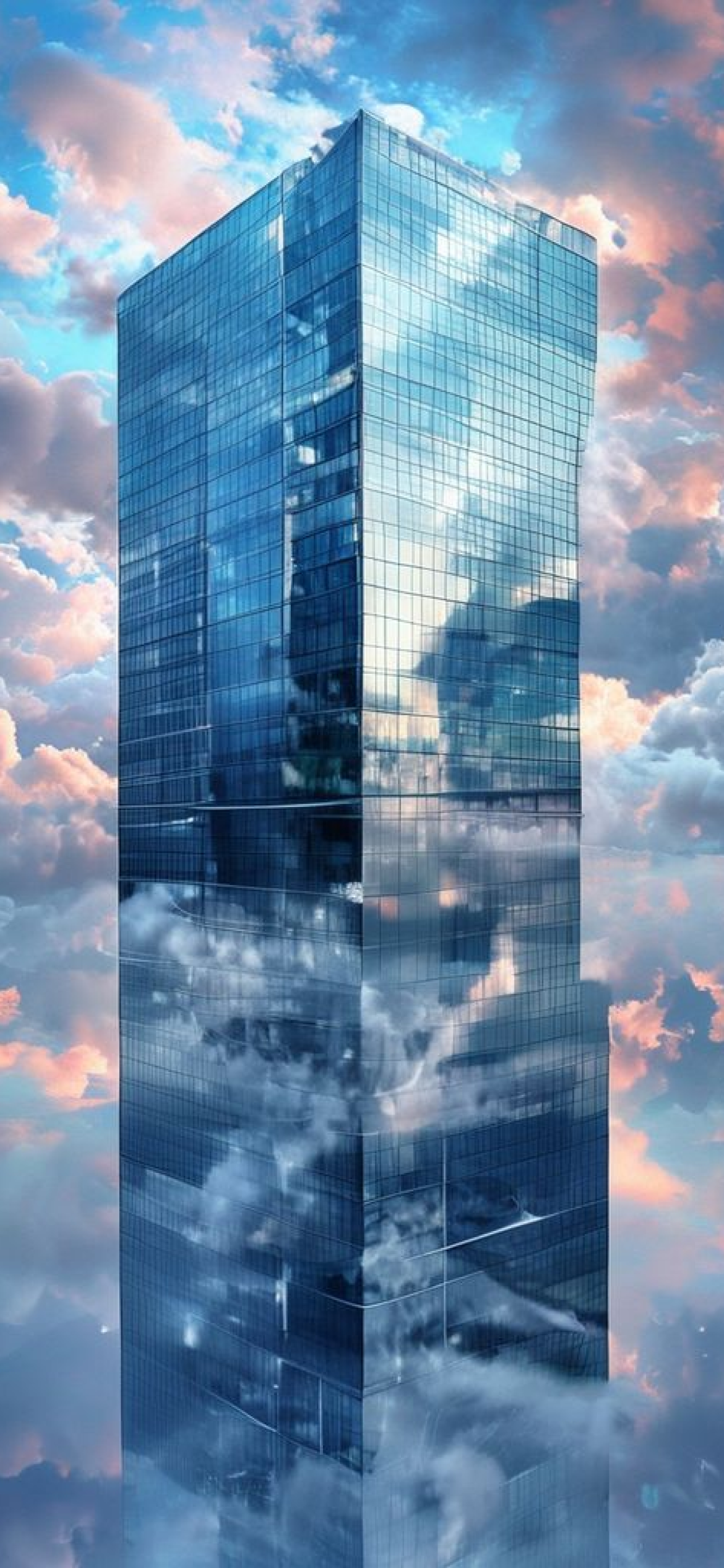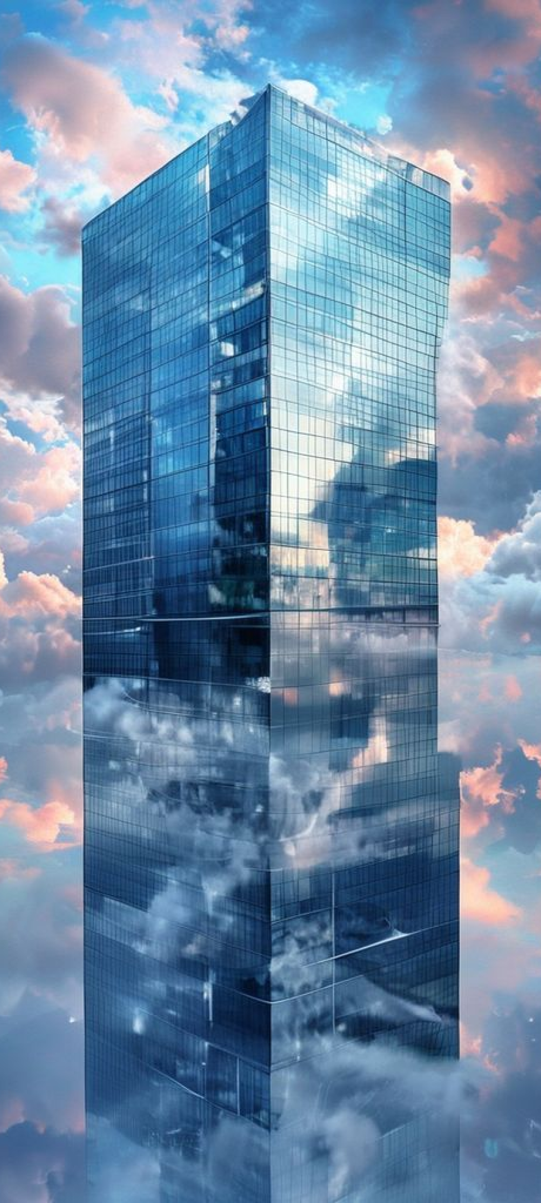 Glass Skyscraper Reflections Clouds Warped Photorealistic Wallpaper