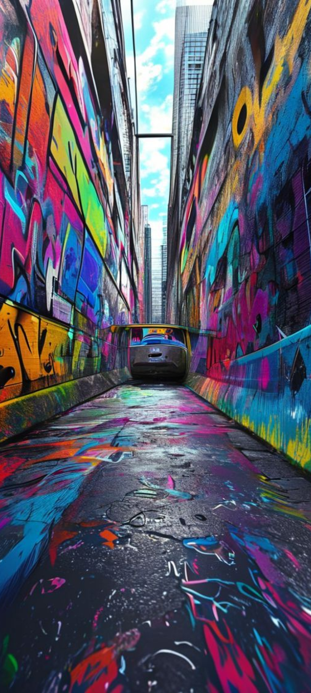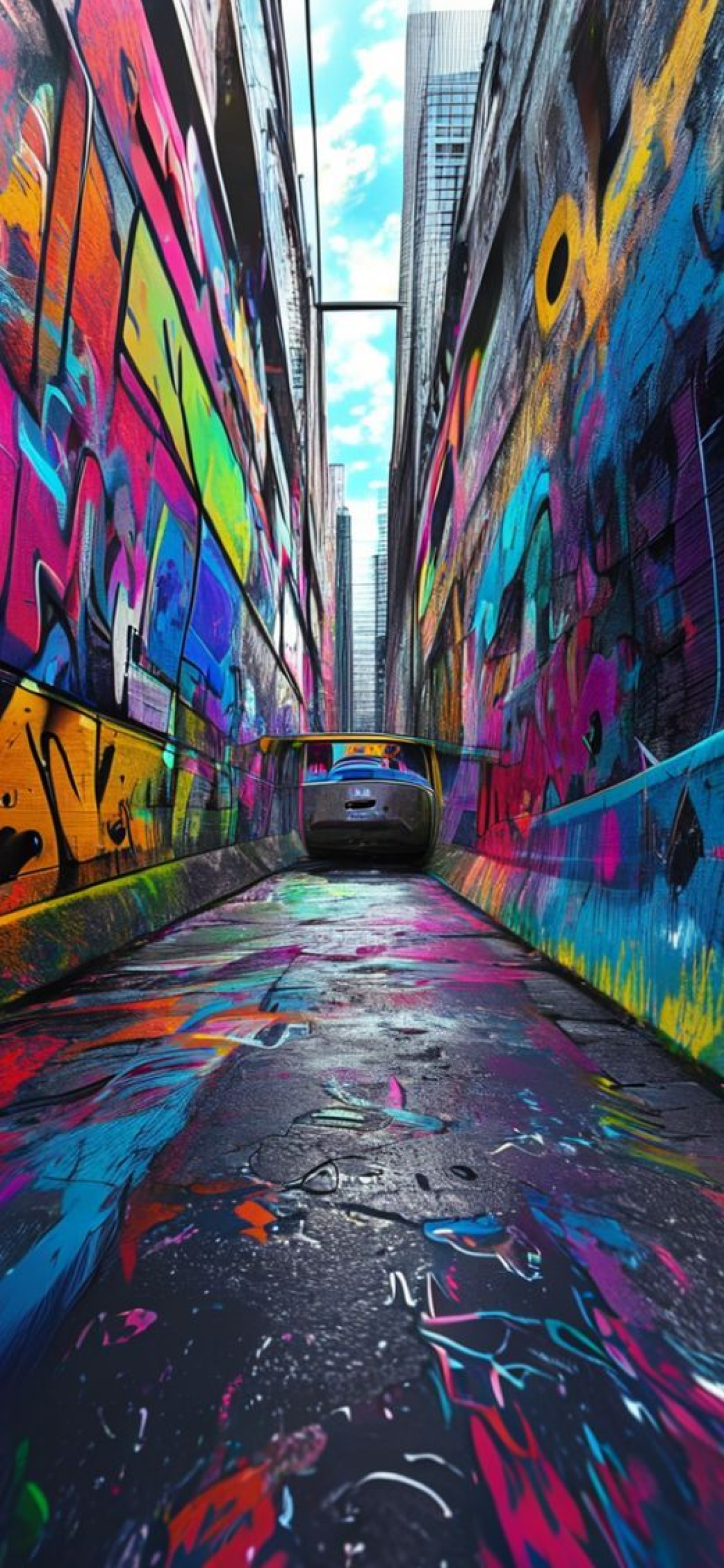 graffiti tunnel perspective vanishing point colorful