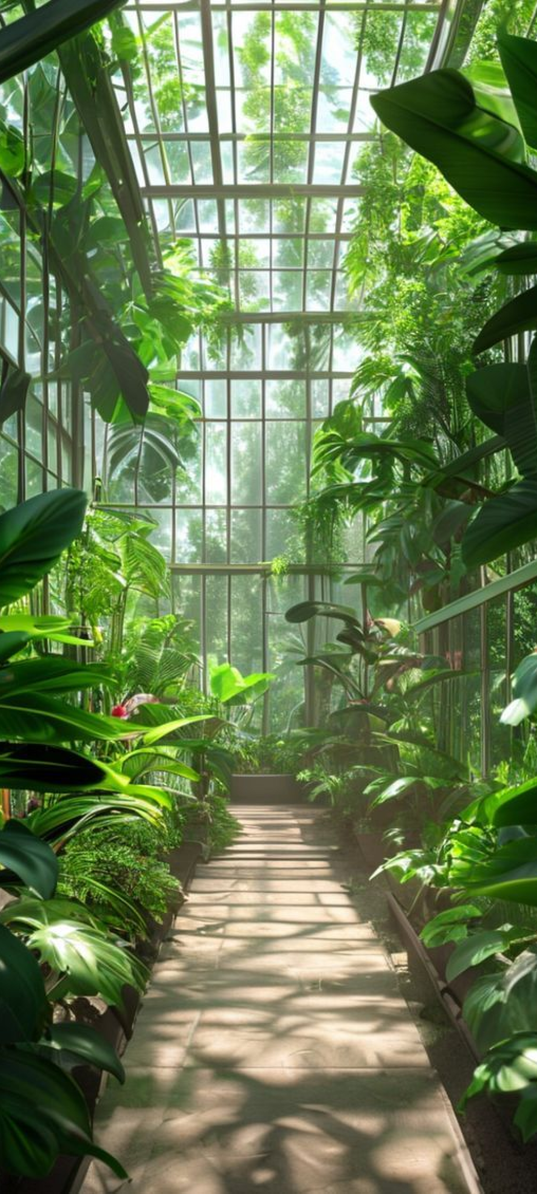 Greenhouse Interior Botanical Garden Glass Photorealistic Wallpaper
