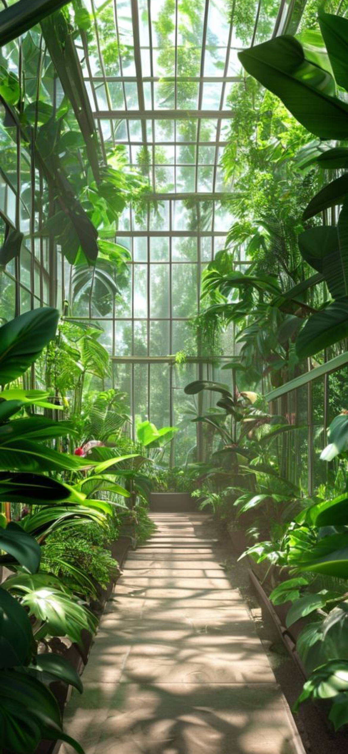 Greenhouse Interior Botanical Garden Glass Photorealistic Wallpaper
