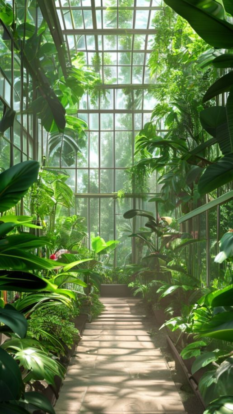 greenhouse interior botanical garden glass ceiling