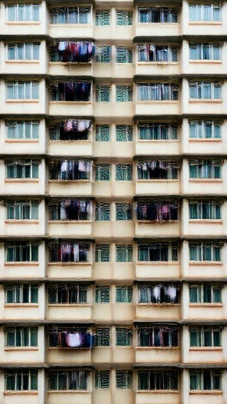 Hong Kong Density Apartments Laundry Photorealistic Wallpaper