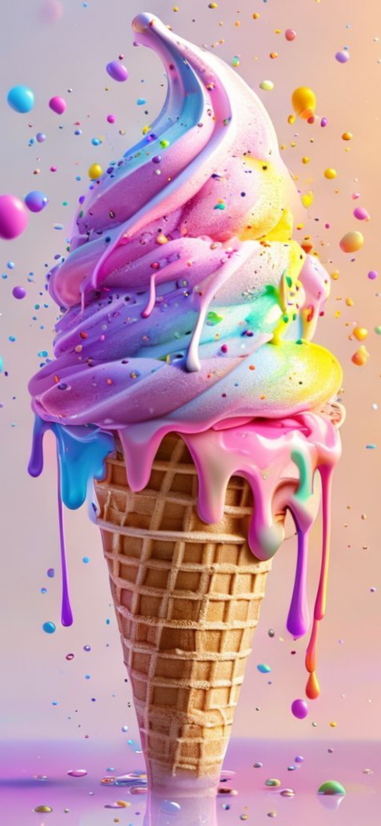 Ice Cream Cone Melting Summer Photorealistic Wallpaper