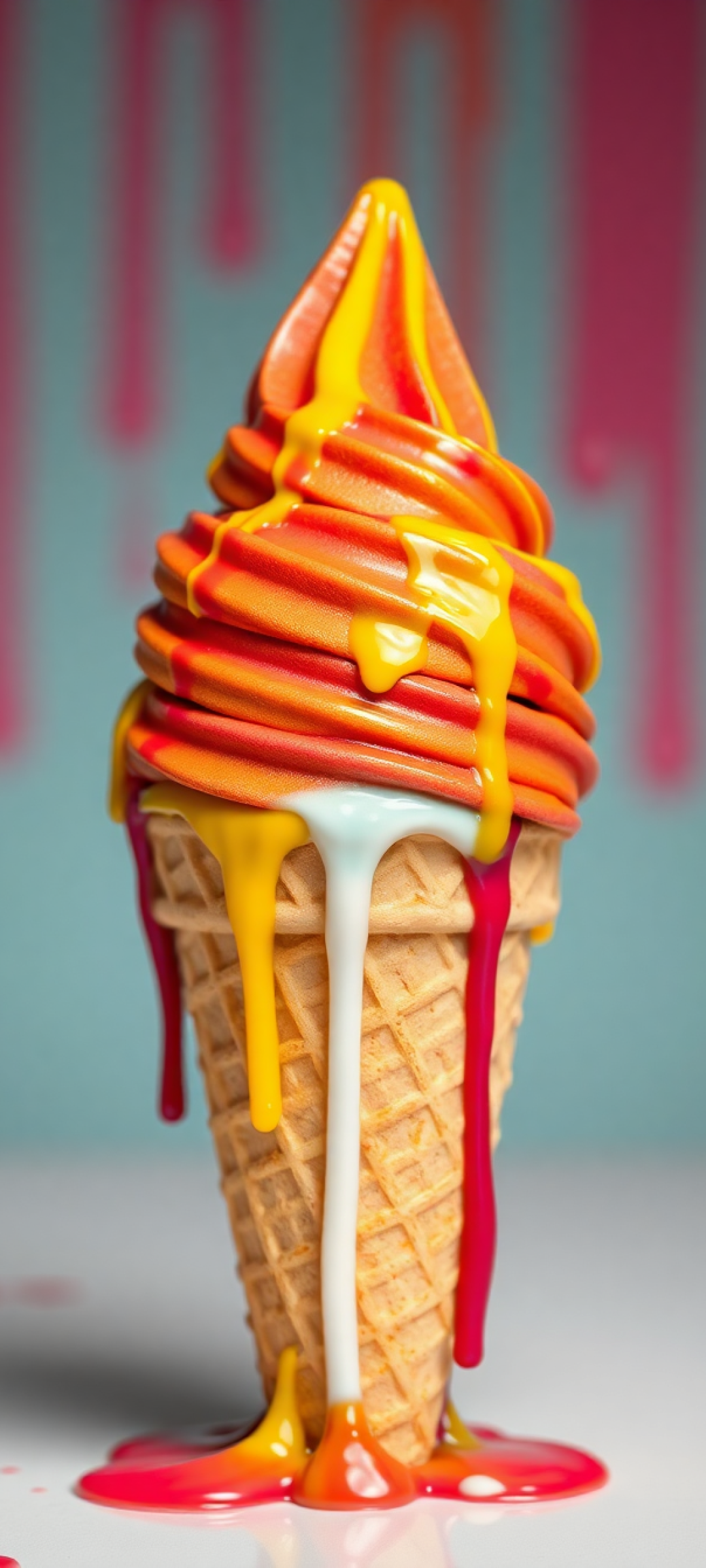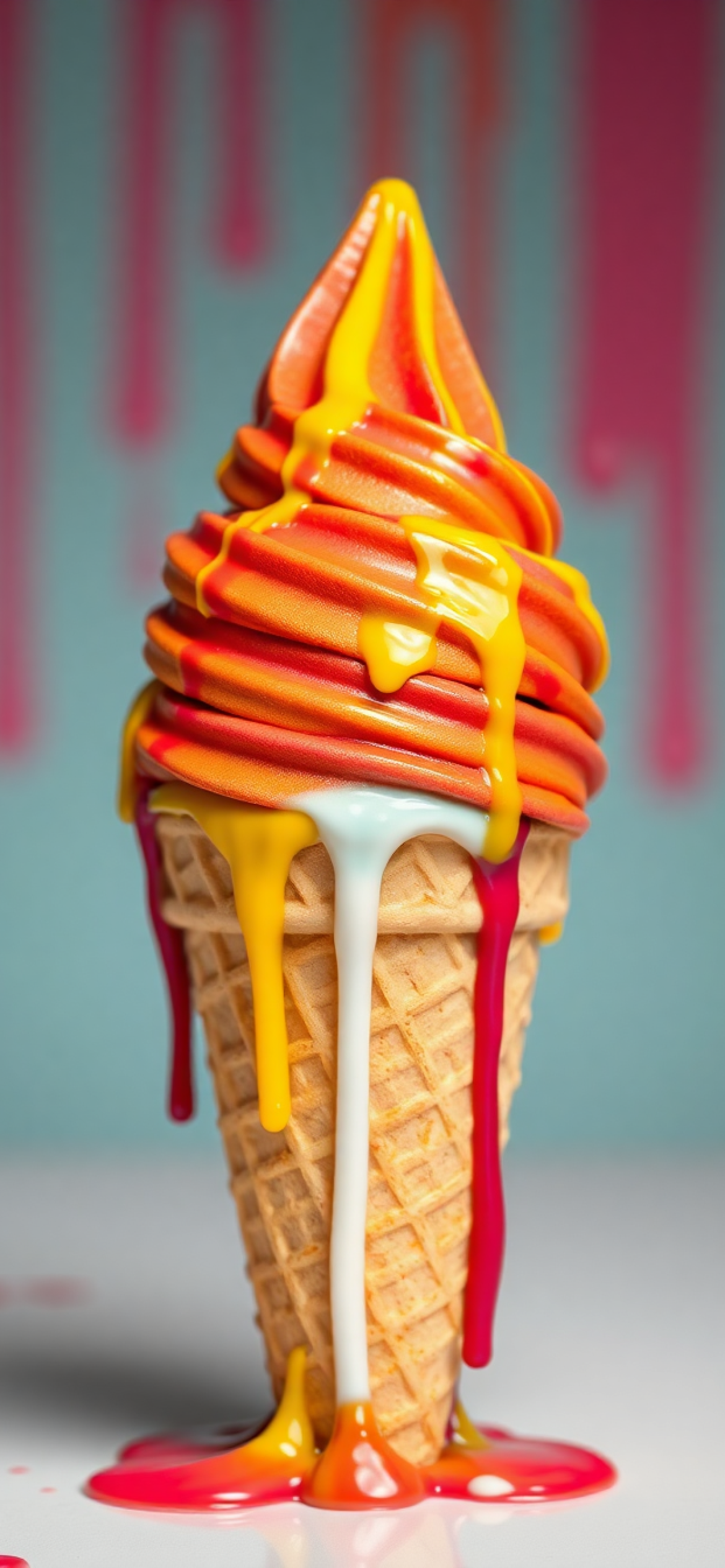 Ice Cream Cone Melting Summer Photorealistic Wallpaper
