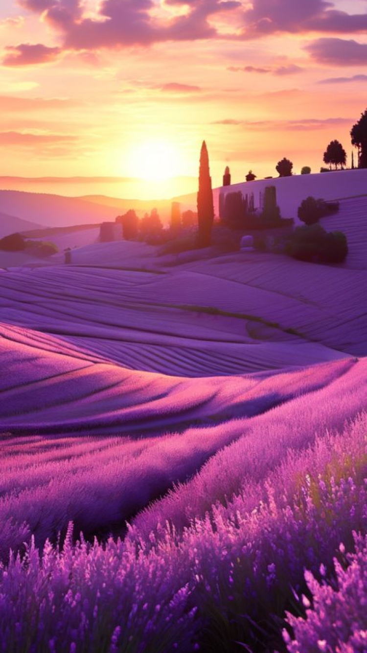 Lavender Fields Provence Sunset Golden Photorealistic Wallpaper