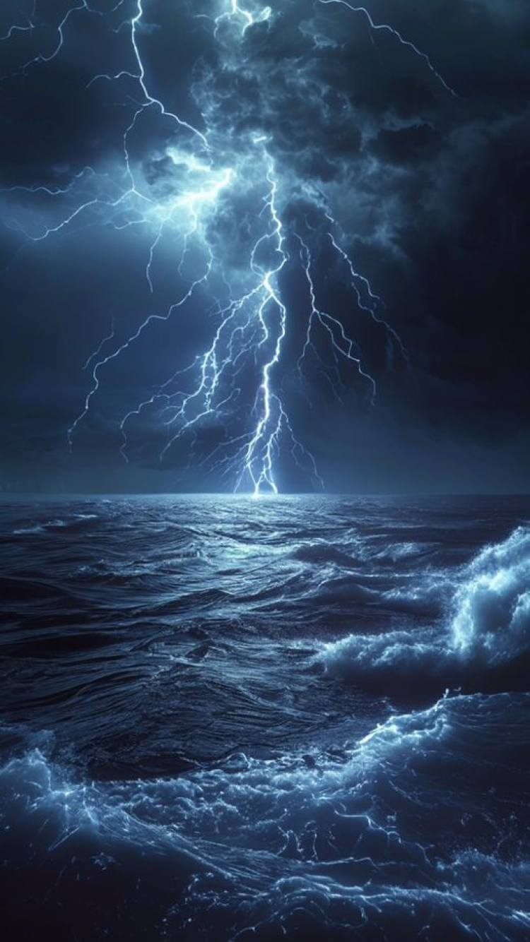 Lightning Storm Over Dark Ocean Photorealistic Wallpaper