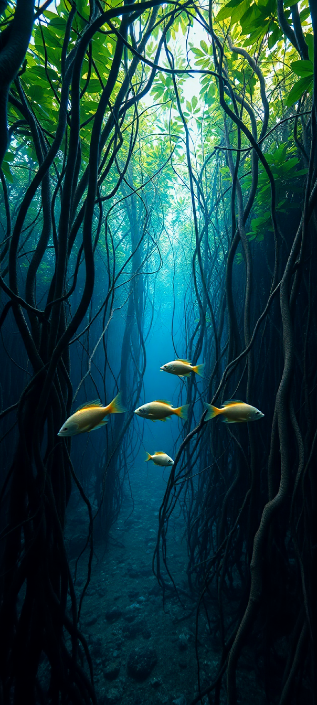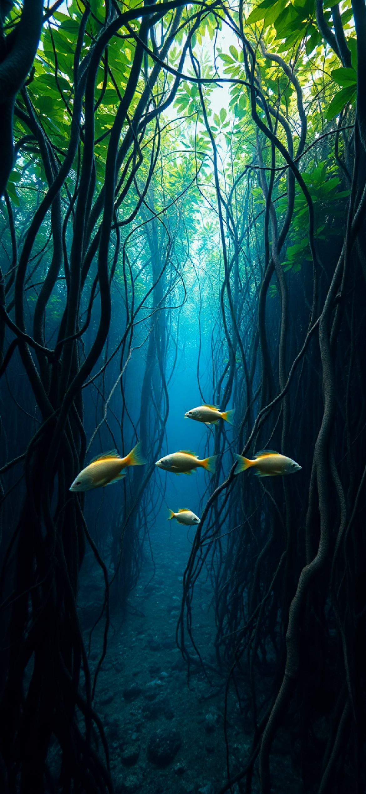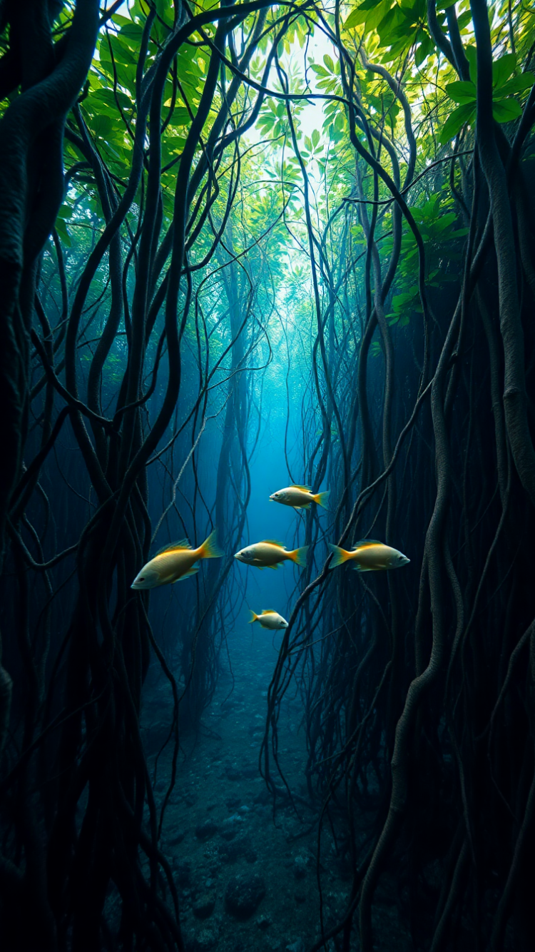 Mangrove Forest Roots Underwater Fish Photorealistic Wallpaper