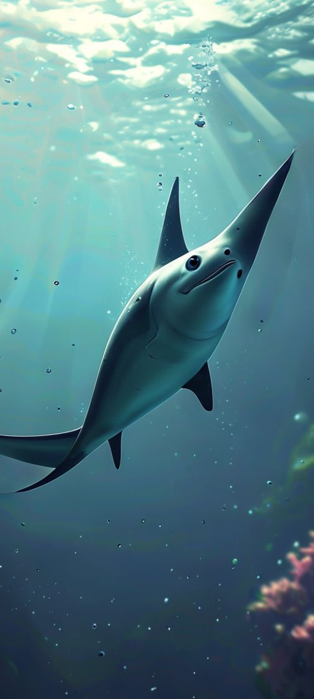 Manta Ray Gliding Graceful Underwater Photorealistic Wallpaper