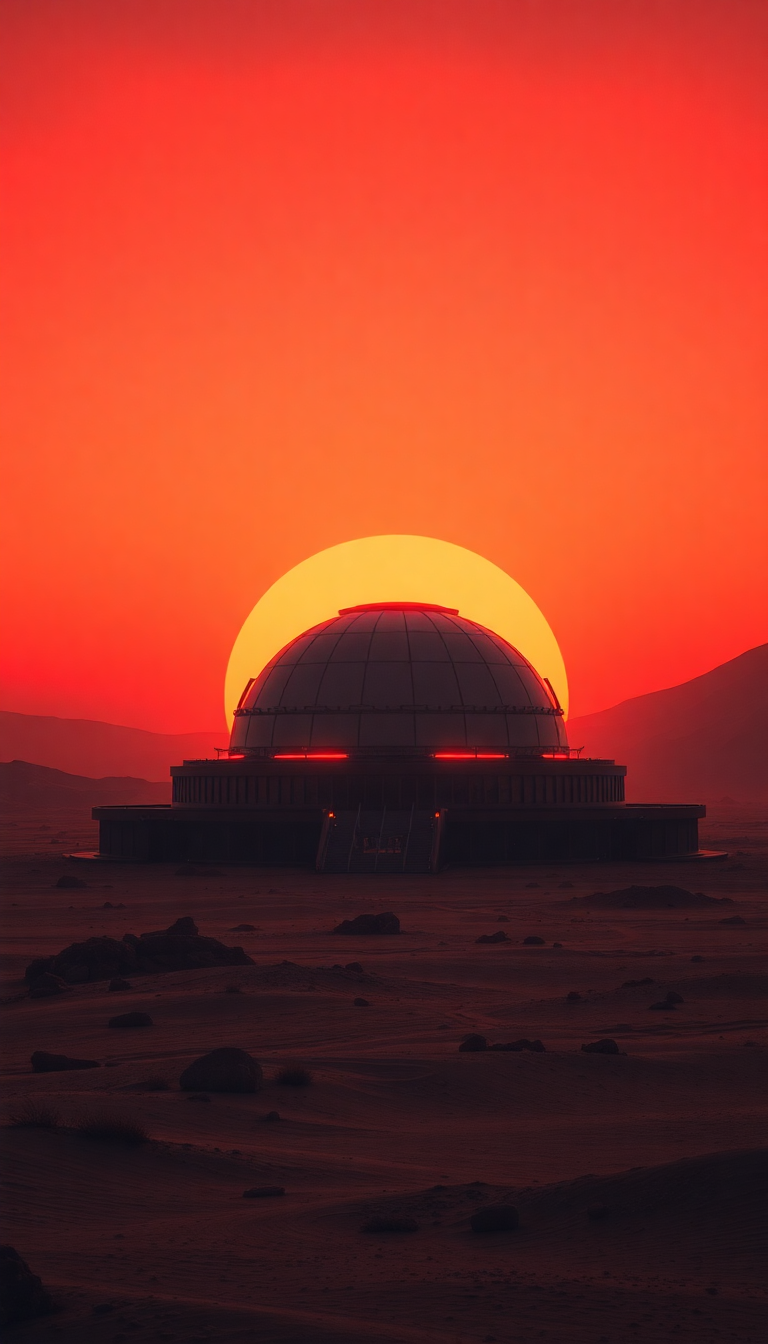 mars colony dome at sunset red sky