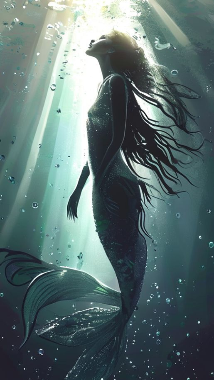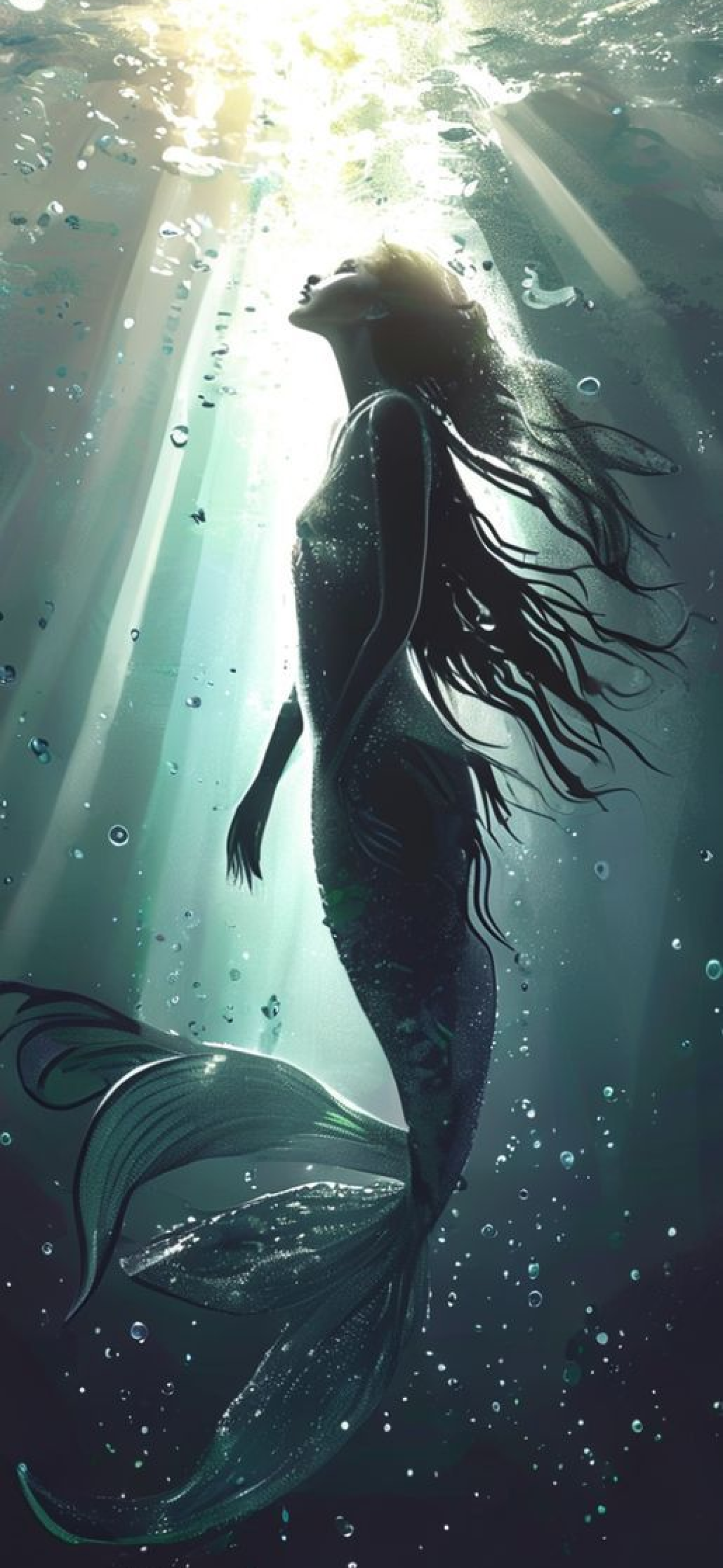 Mermaid Silhouette Swimming Toward Surface Digital art Wallpaper