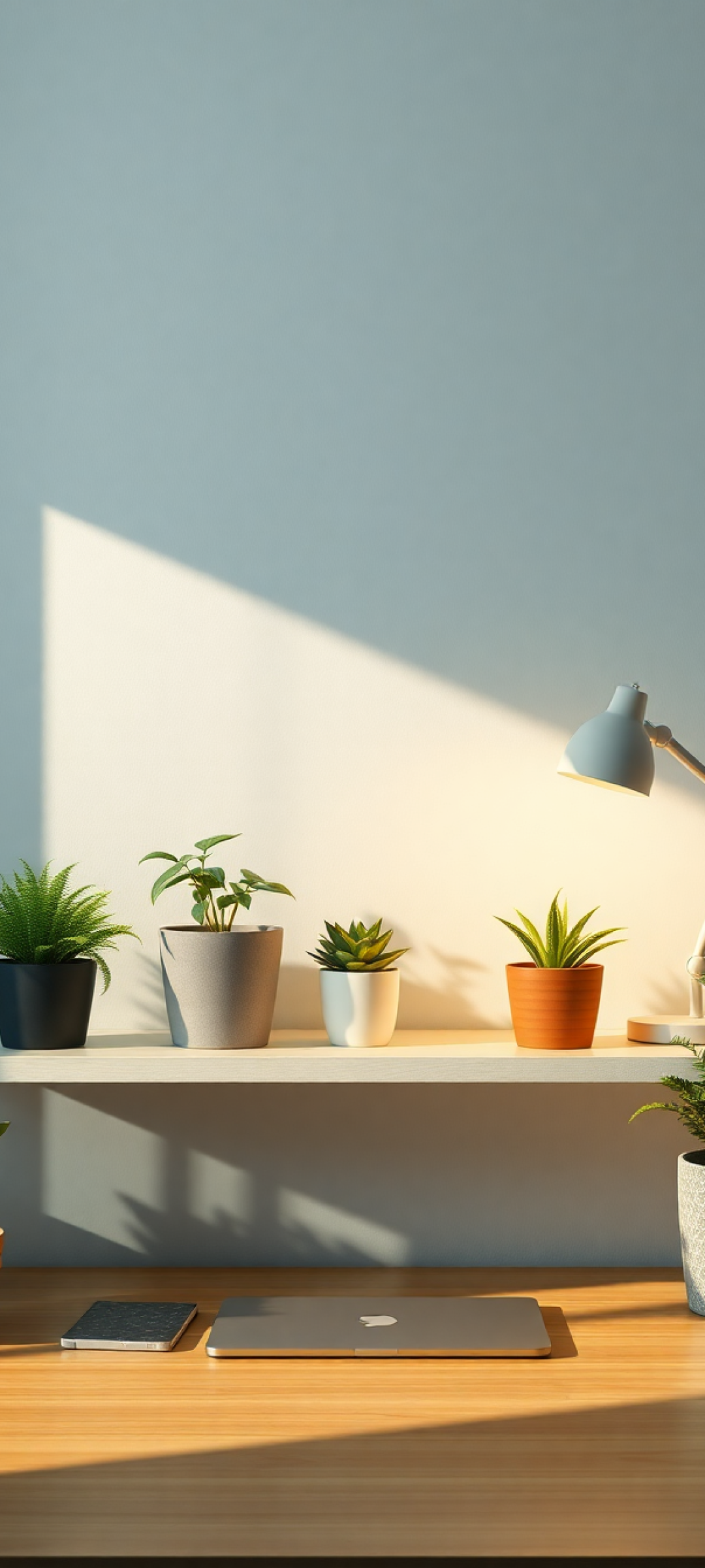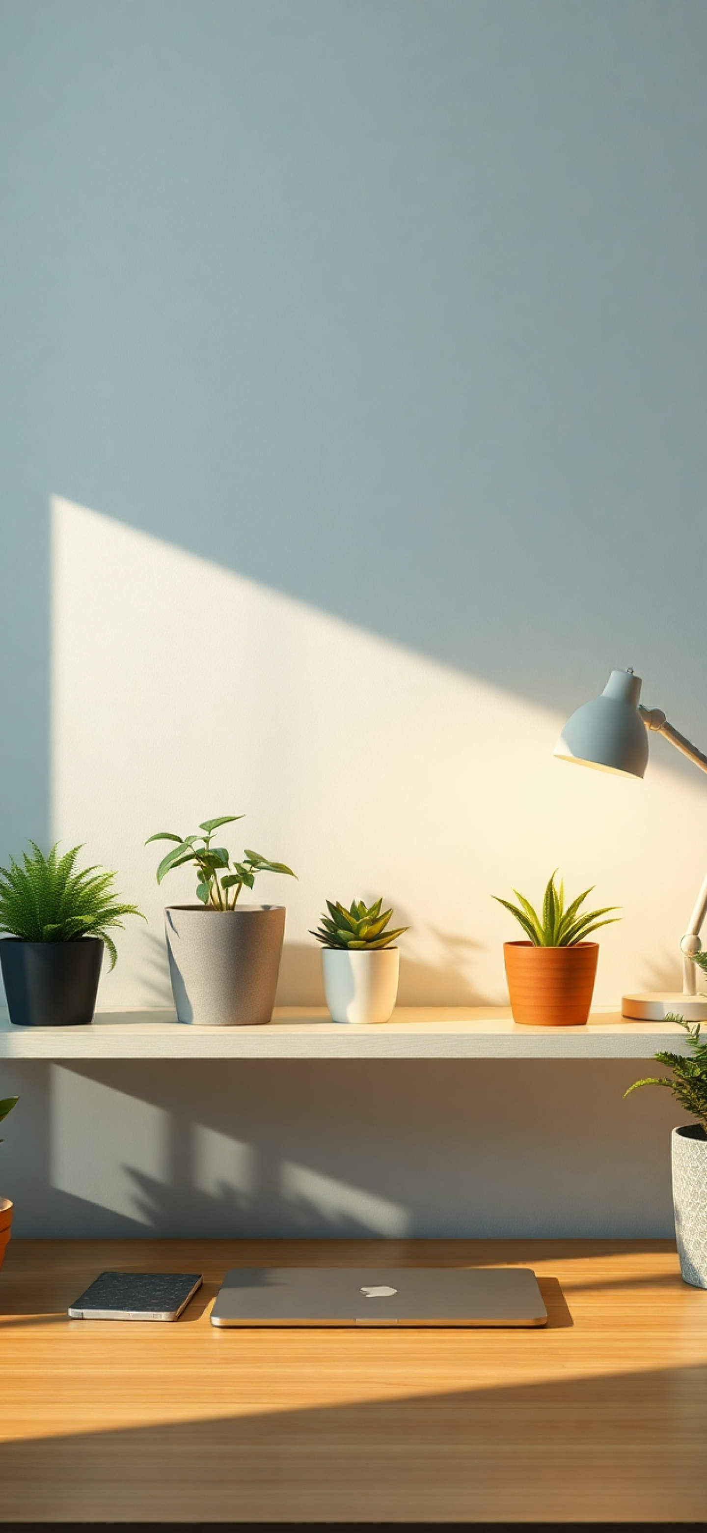 Minimalist Desk Setup Plants Morning Photorealistic Wallpaper