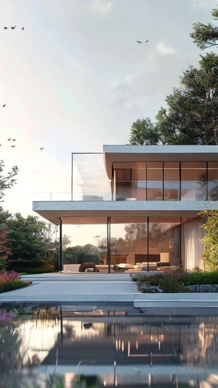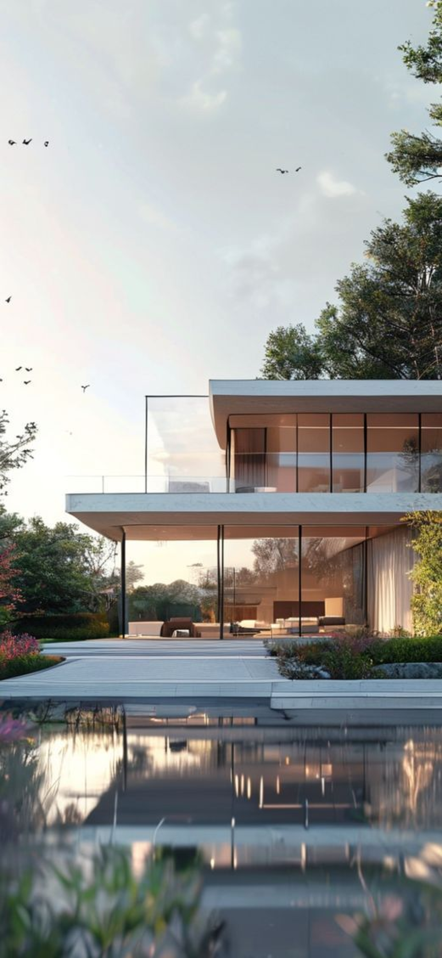 Modern Minimalist House Glass Walls Photorealistic Wallpaper