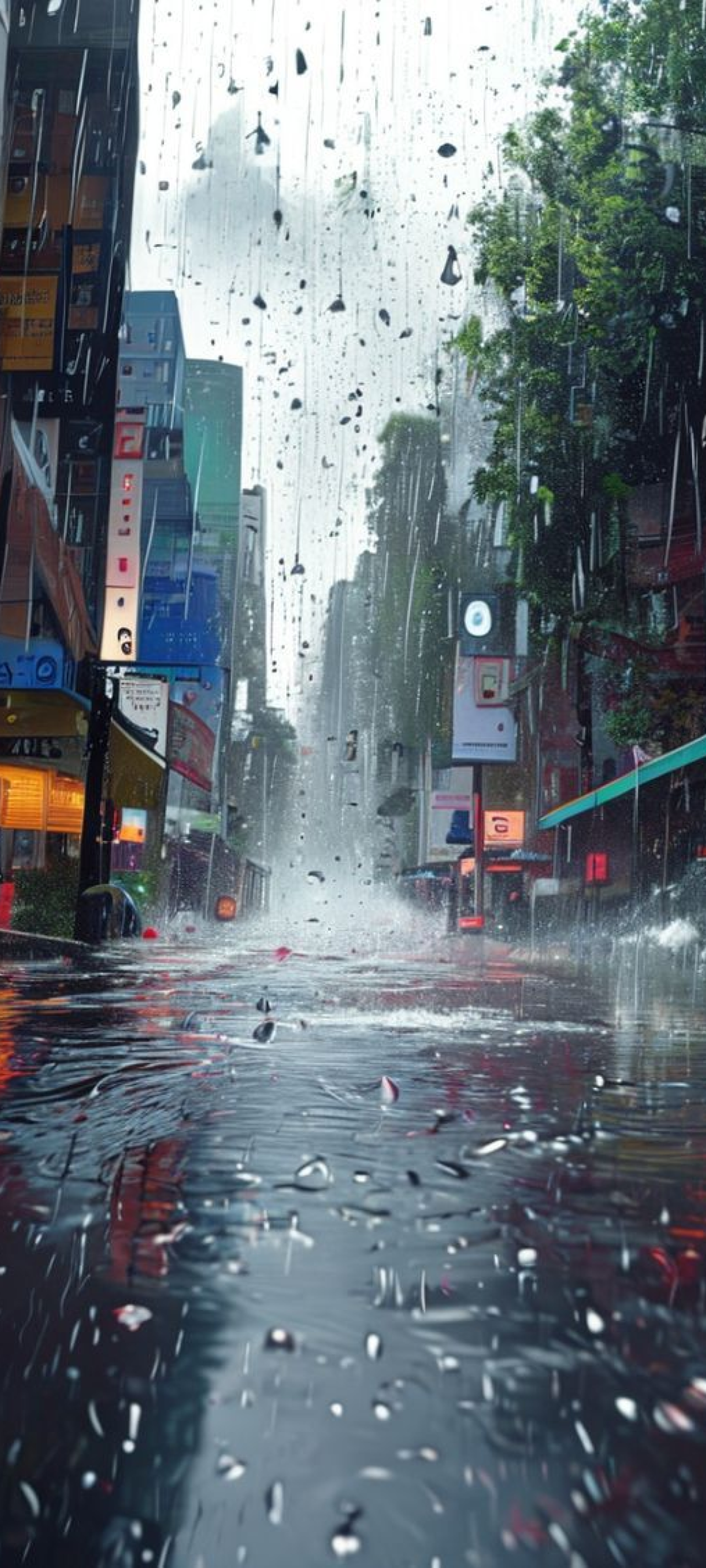 Monsoon Rain Heavy Downpour Street Photorealistic Wallpaper