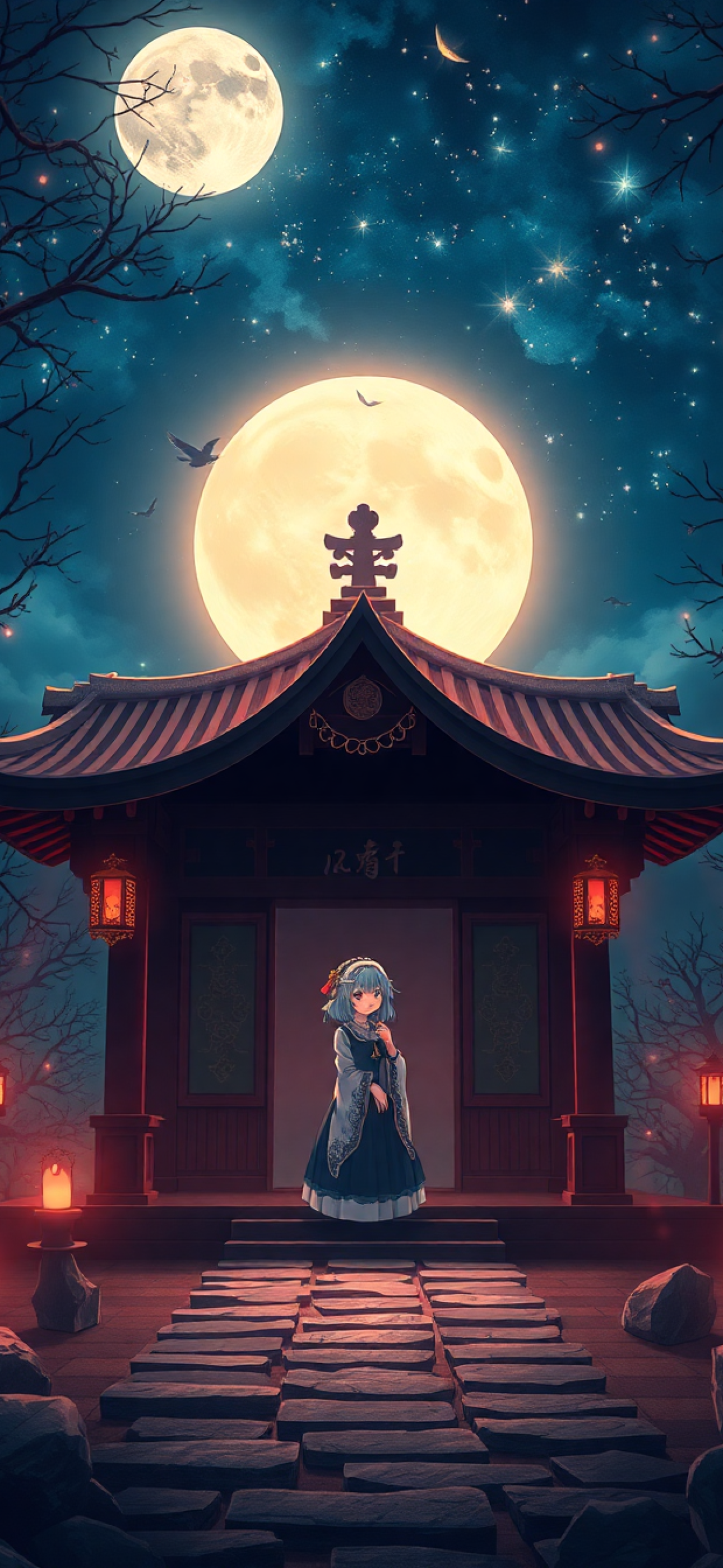 Moonlit Shrine Maiden Anime Mystical Anime Wallpaper