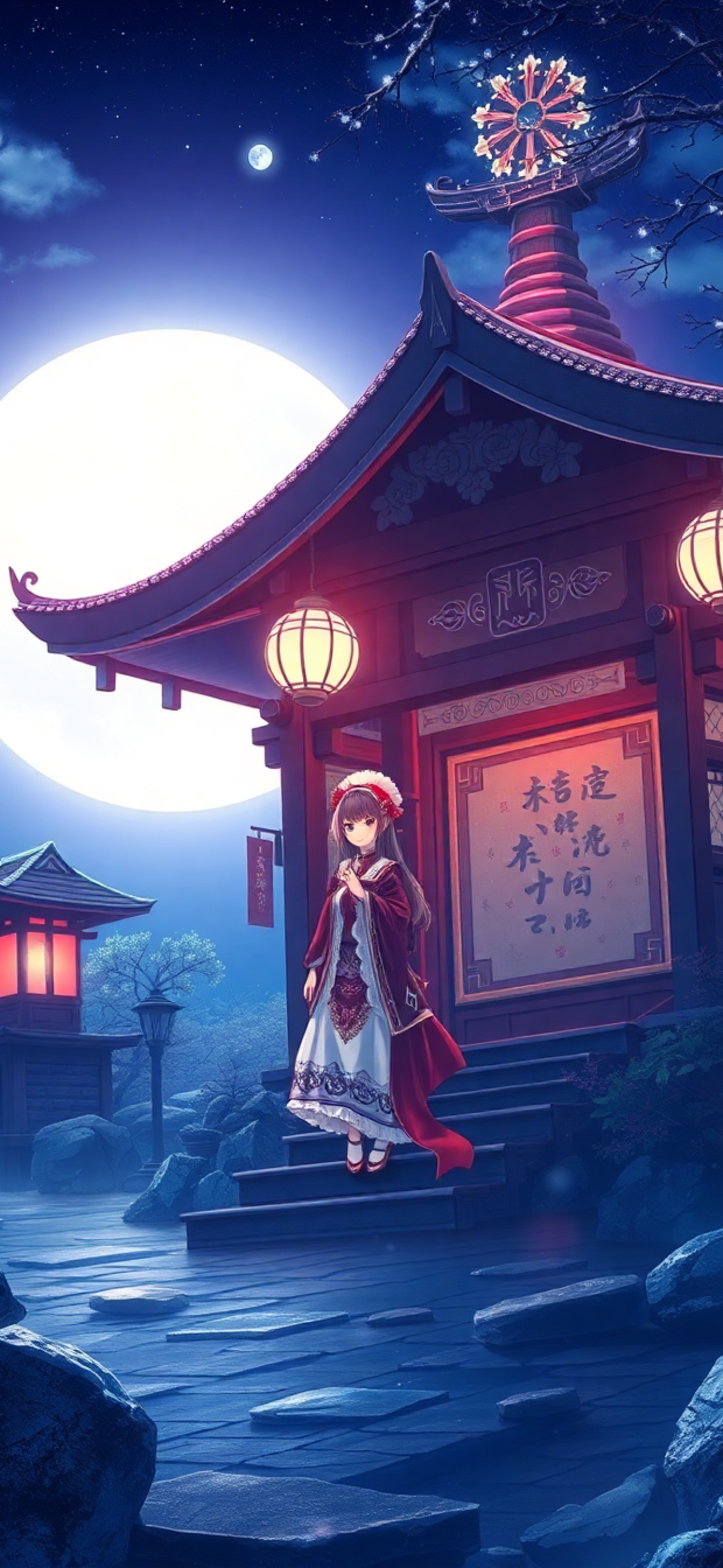 Moonlit Shrine Maiden Anime Mystical Anime Wallpaper