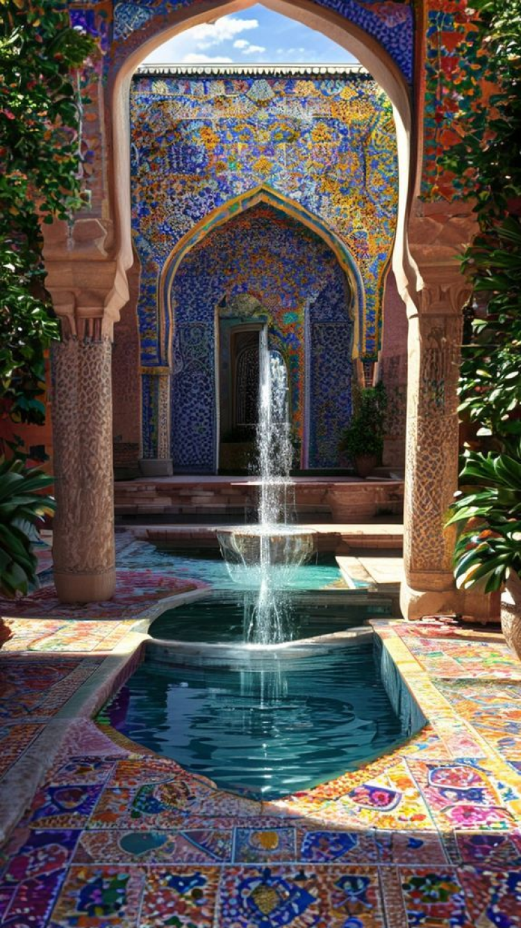moroccan courtyard tiles fountain mosaic patterns