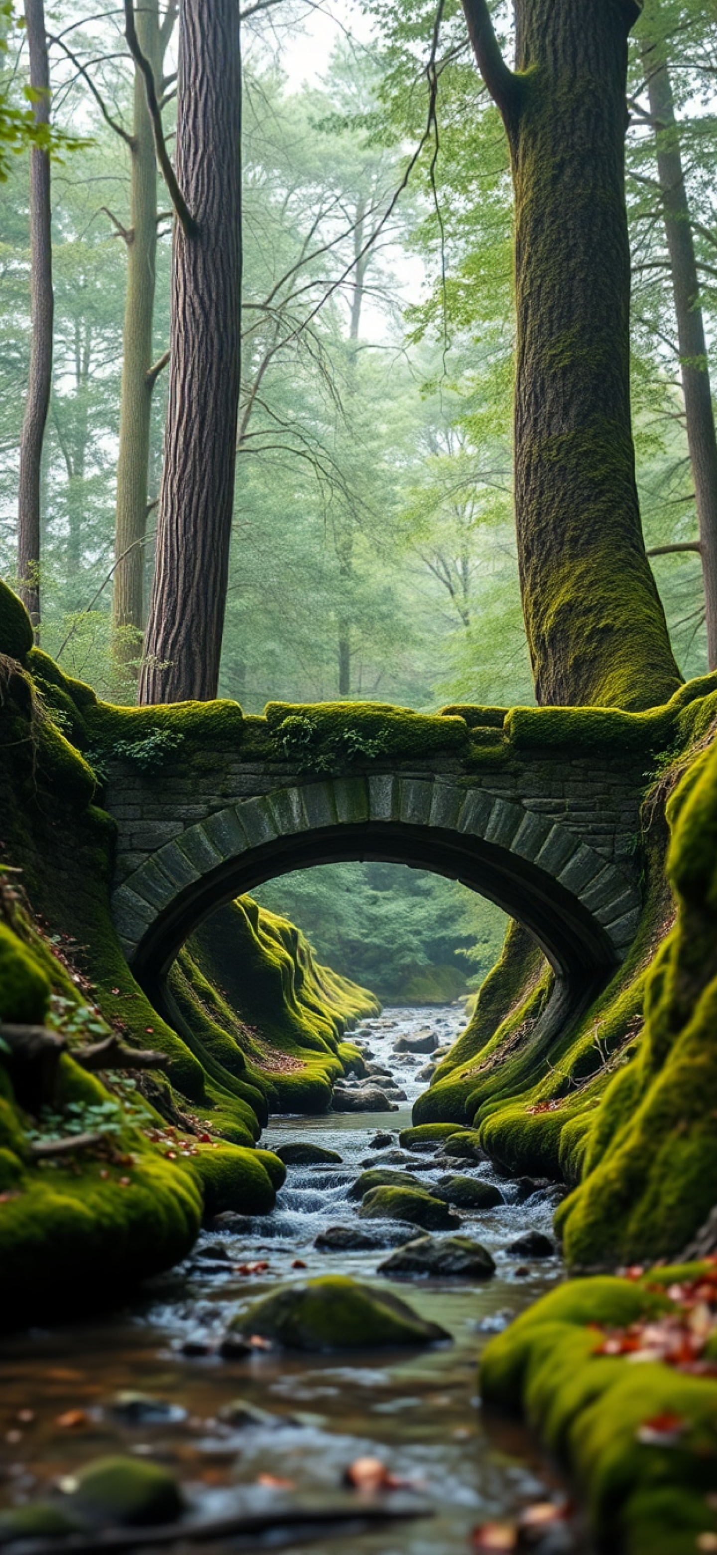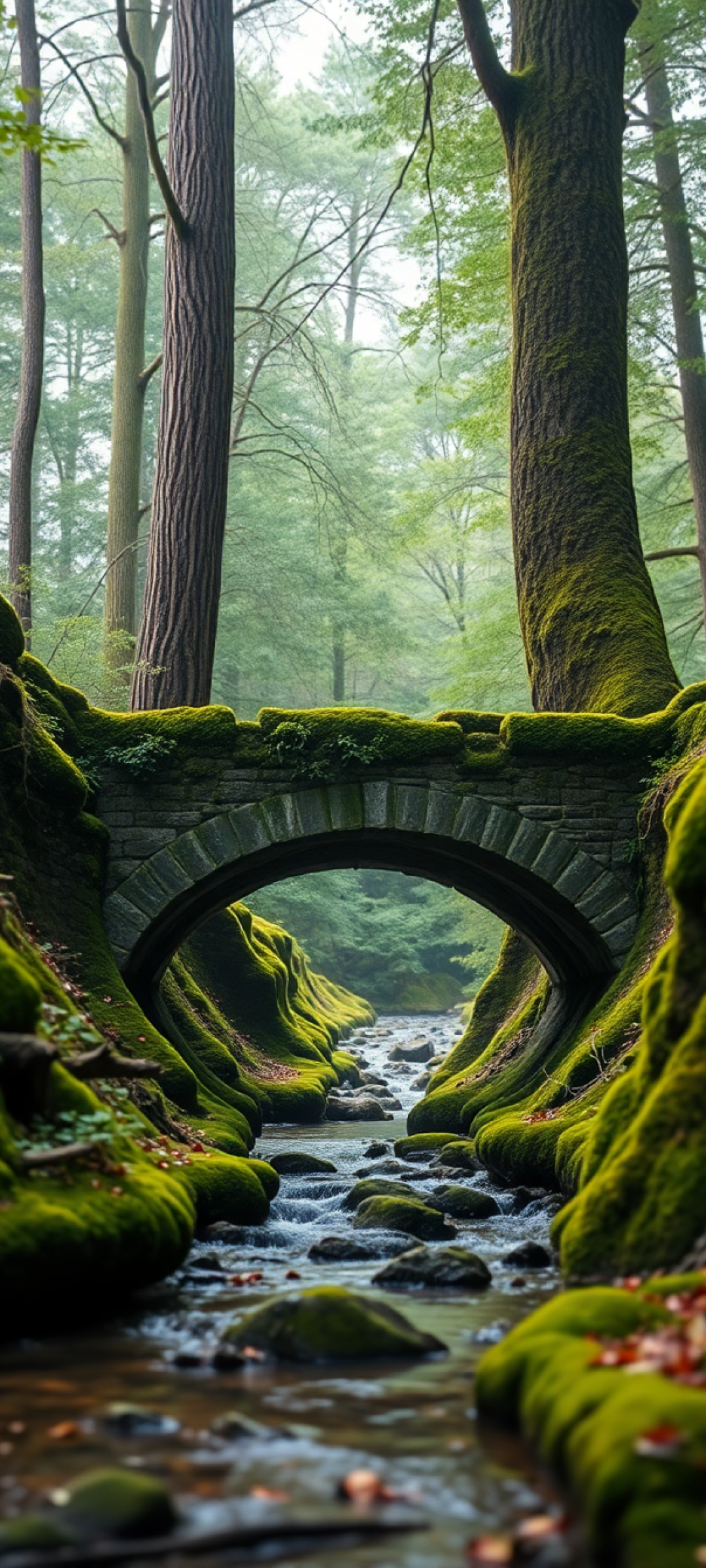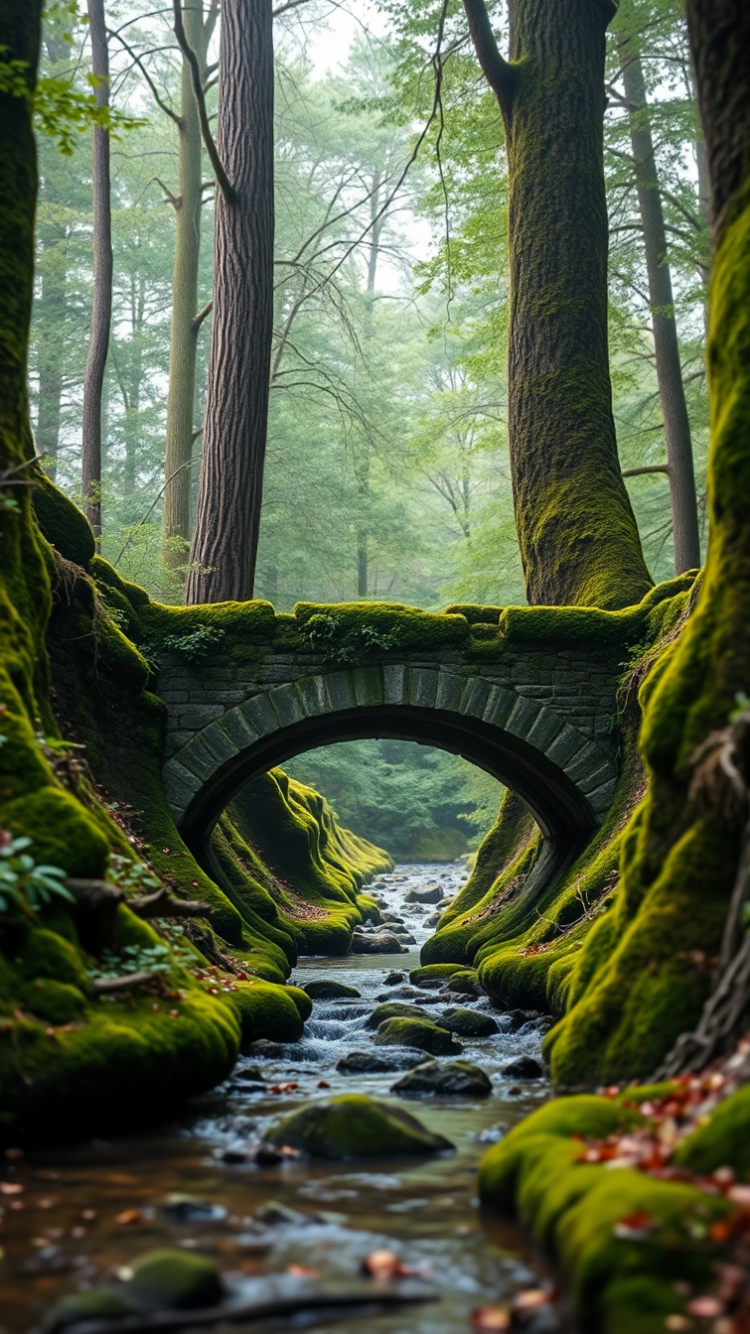 Moss Covered Ancient Stone Bridge Aesthetic Wallpaper