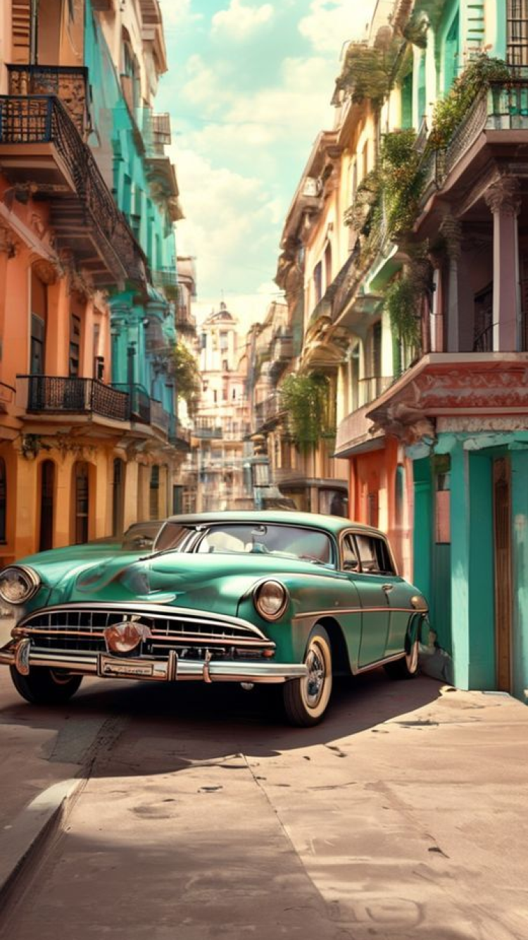 Old Havana Classic Cars Pastel Photorealistic Wallpaper